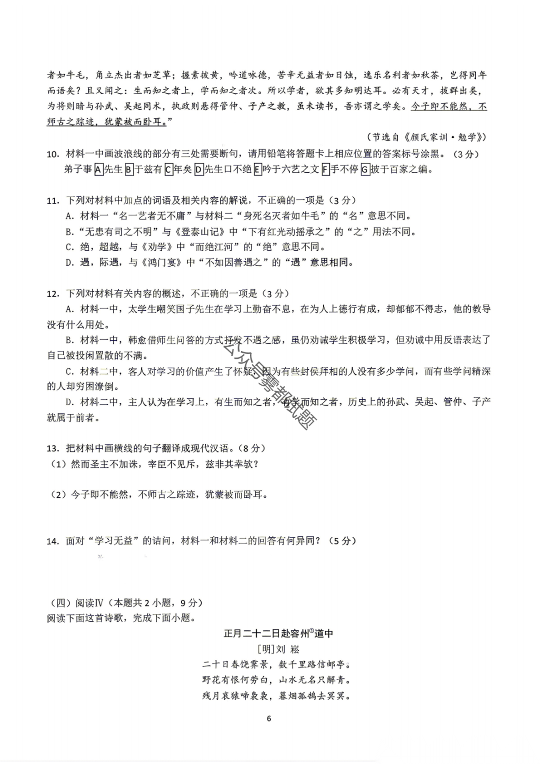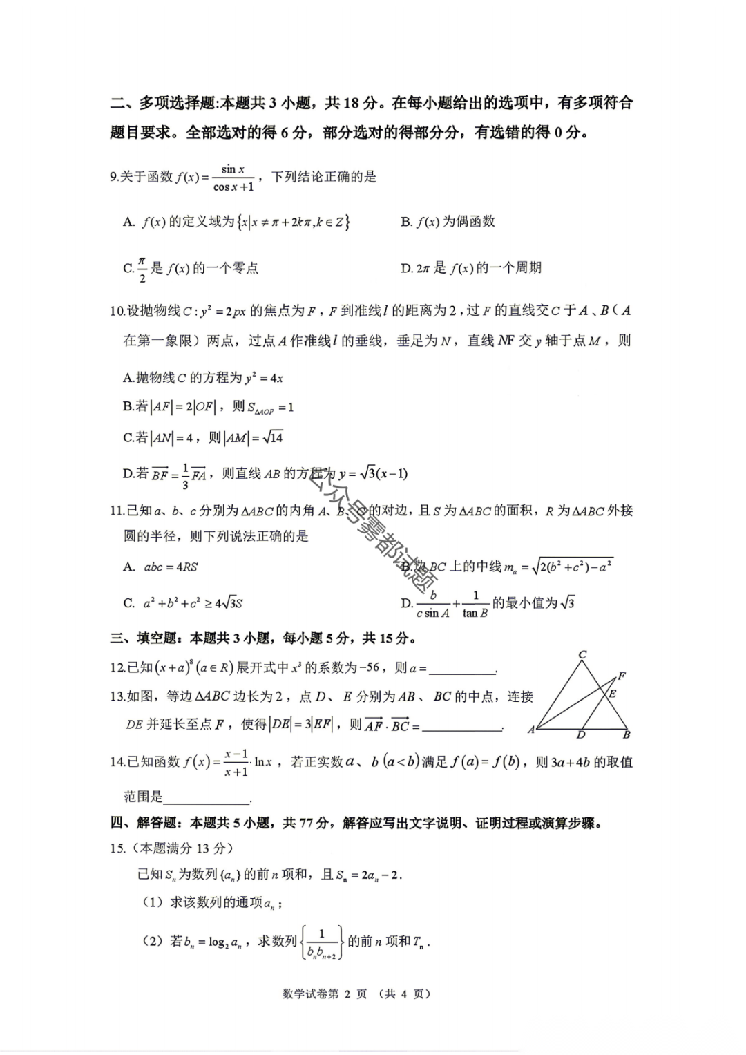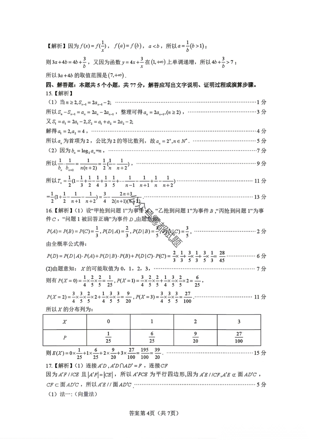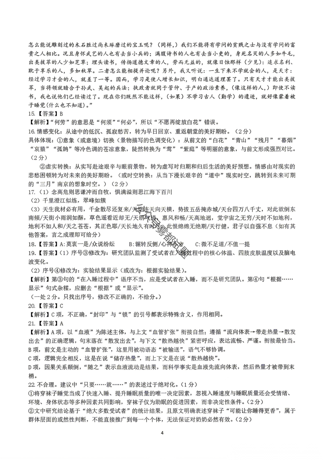 金华十校2026年4月高三模拟考试答案 金华十校2026年4月高三模拟考试答案