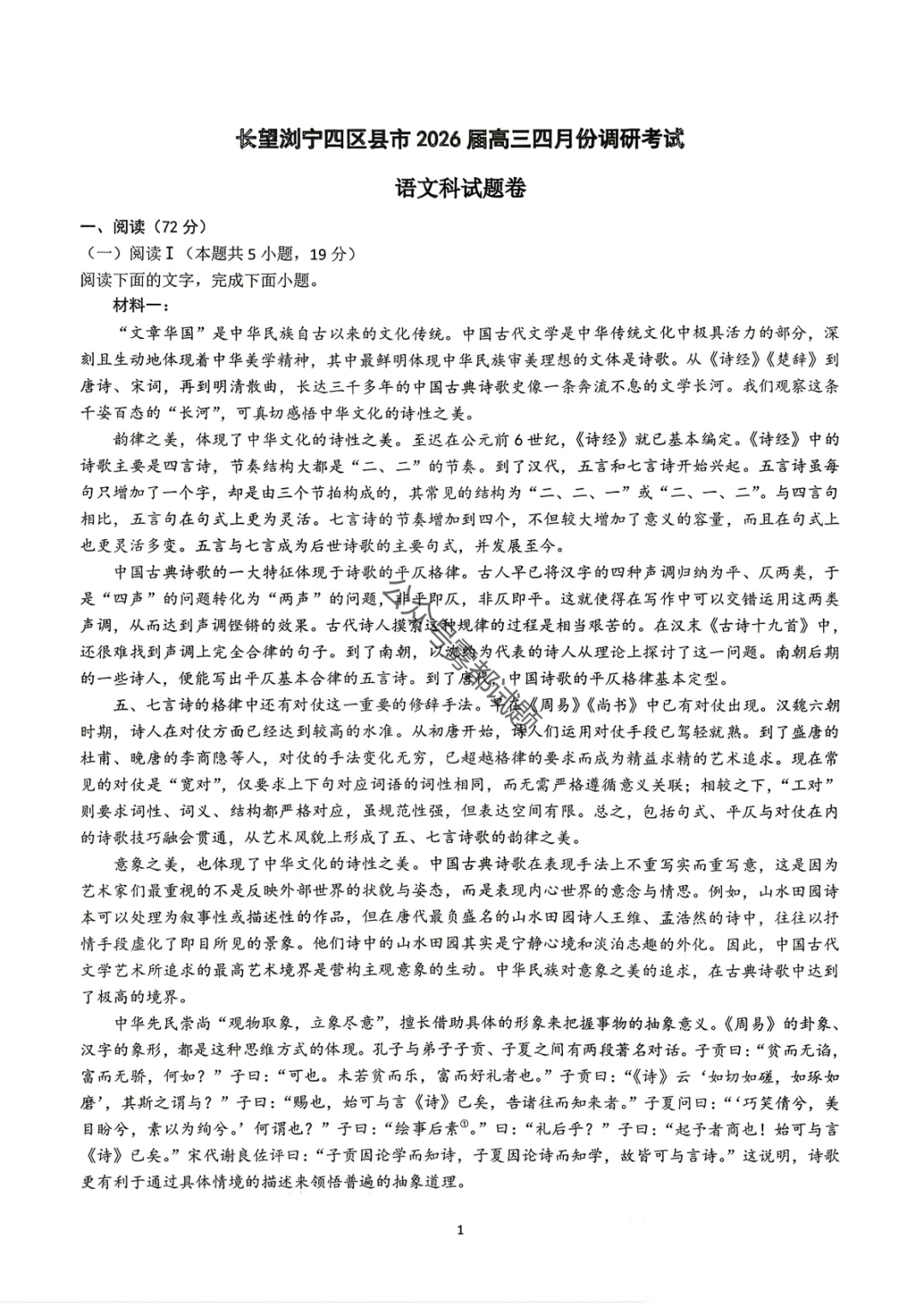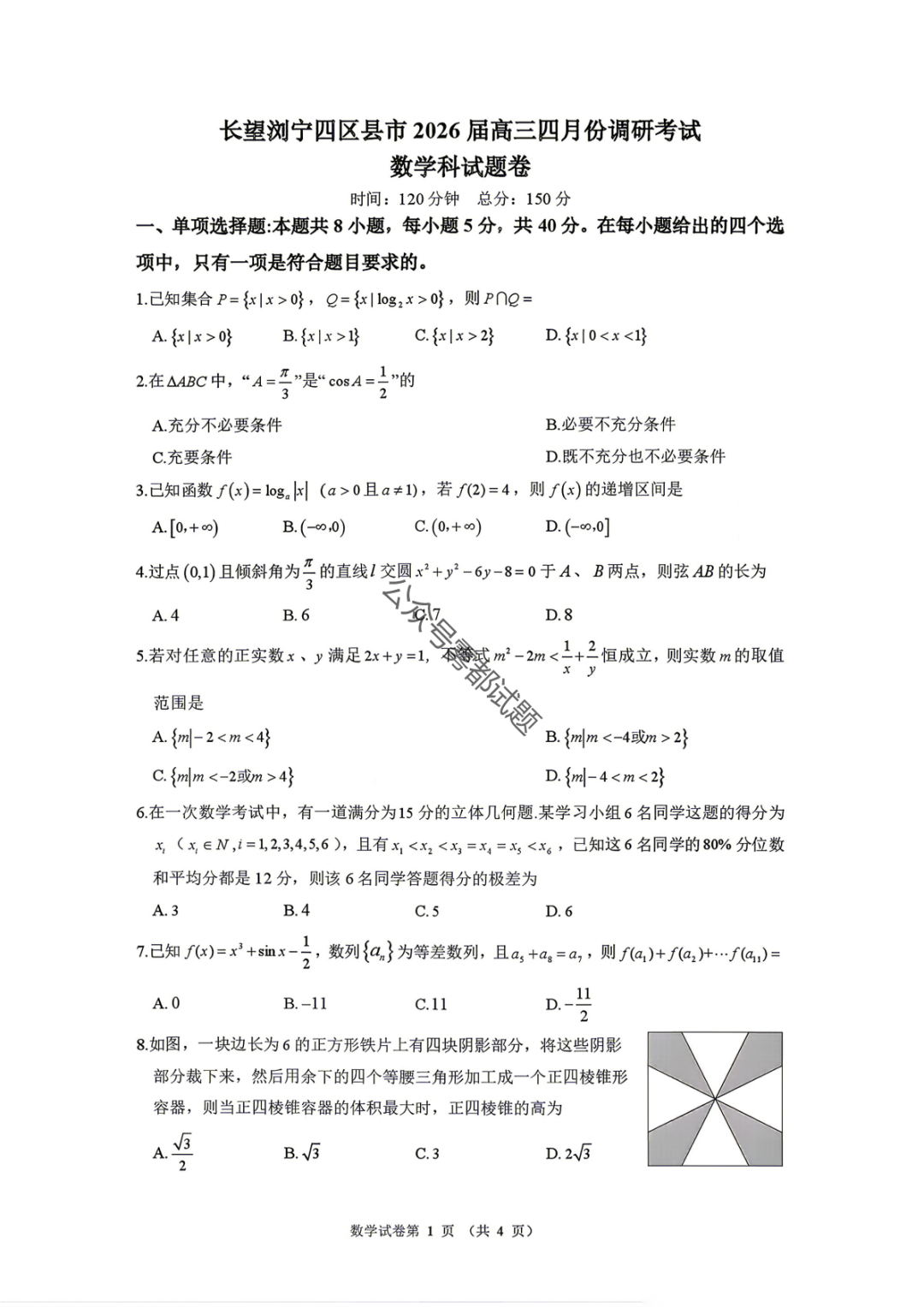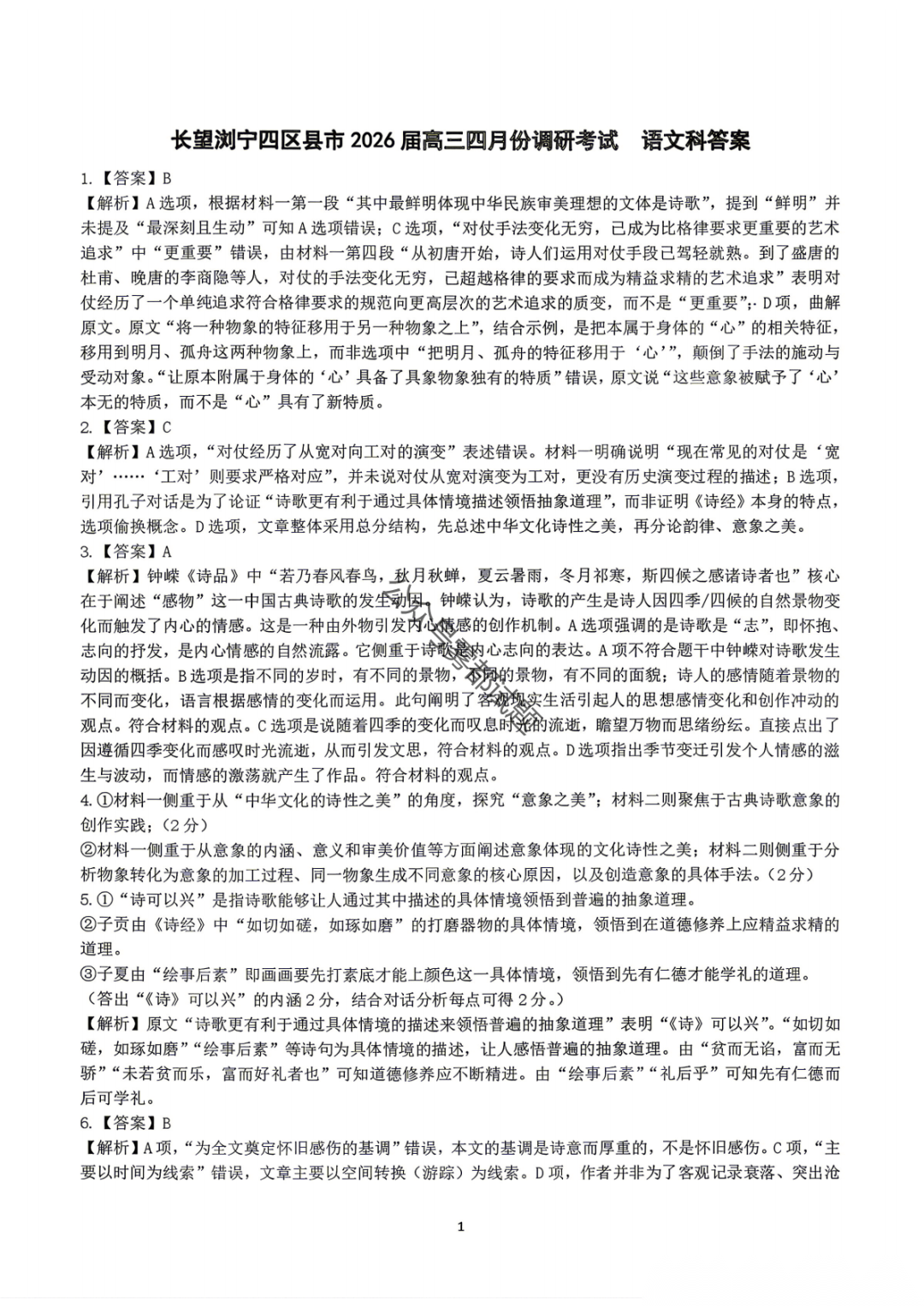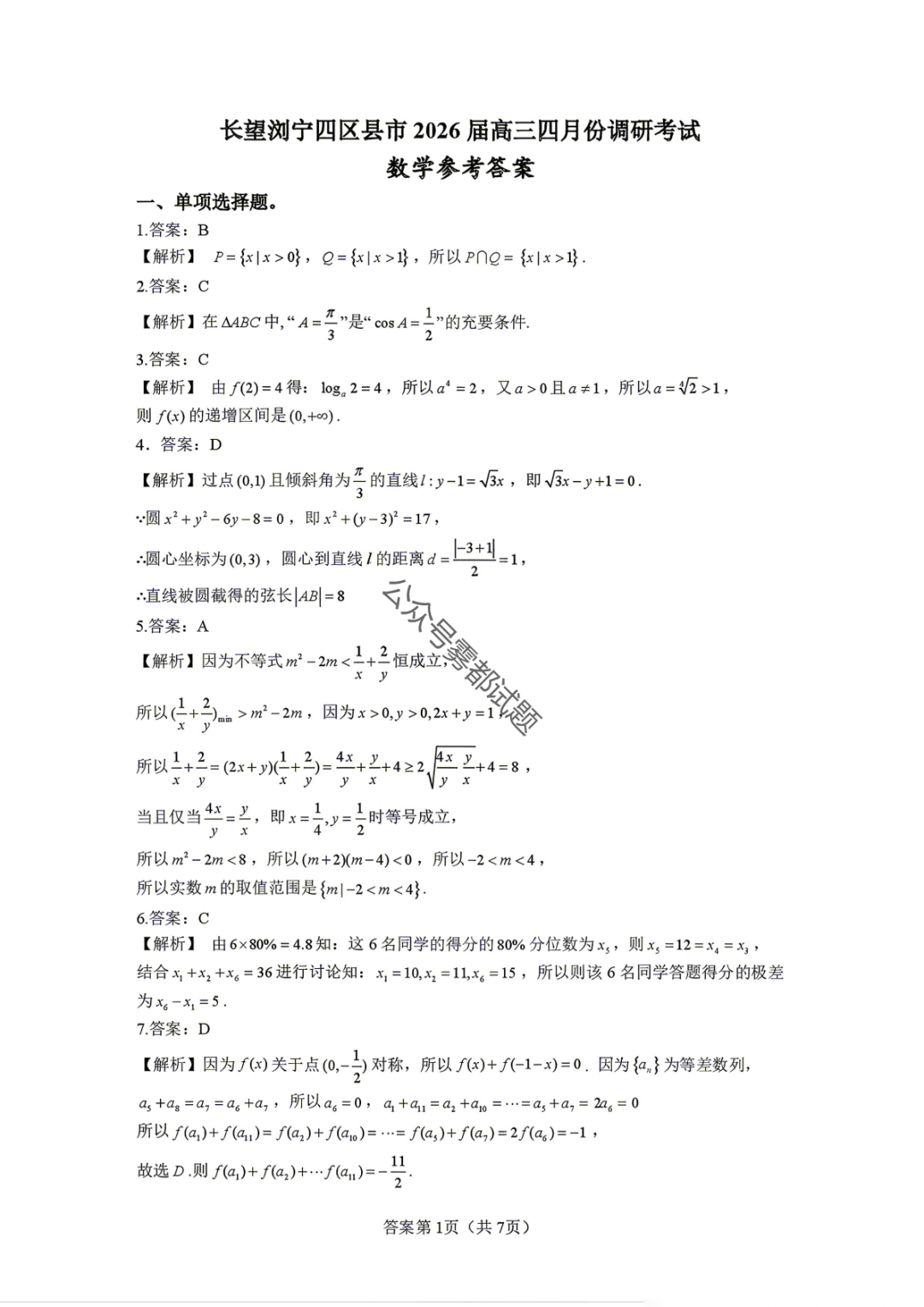 湖南省长望浏宁四区县市2026届高三四月份调研考试答案