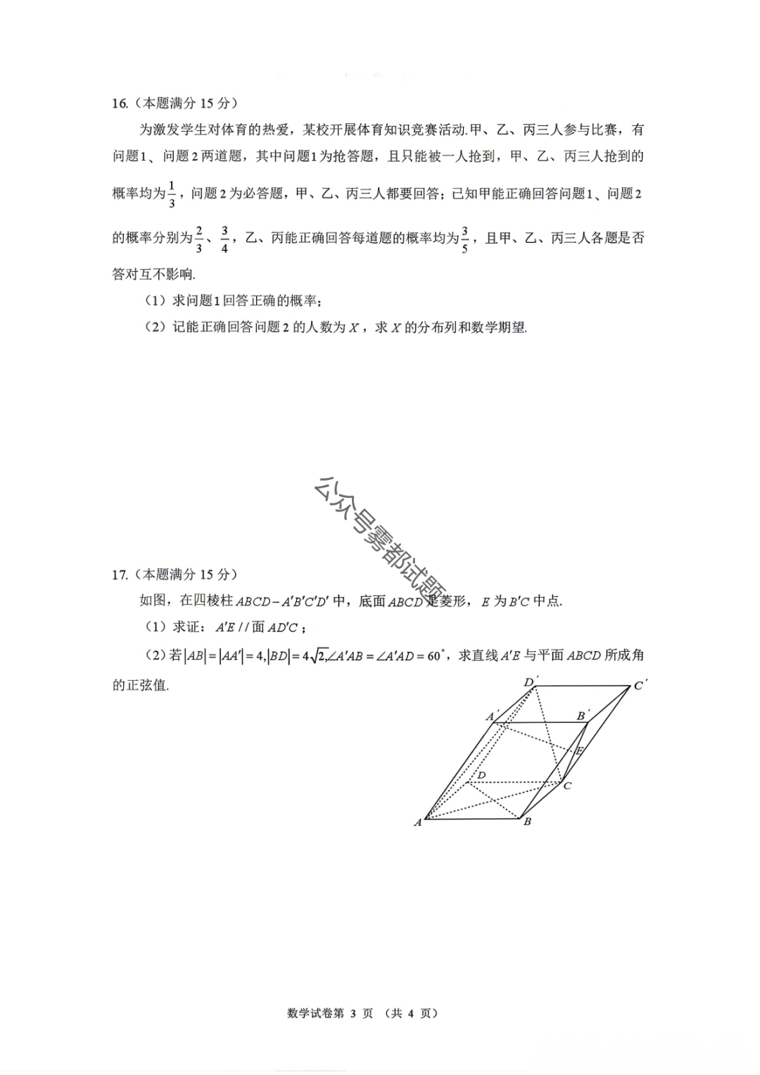 【新疆三模全科】2026年新疆自治区普通高考四月适应性检测 【新疆三模全科】2026年新疆自治区普通高考四月适应性检测