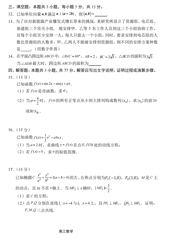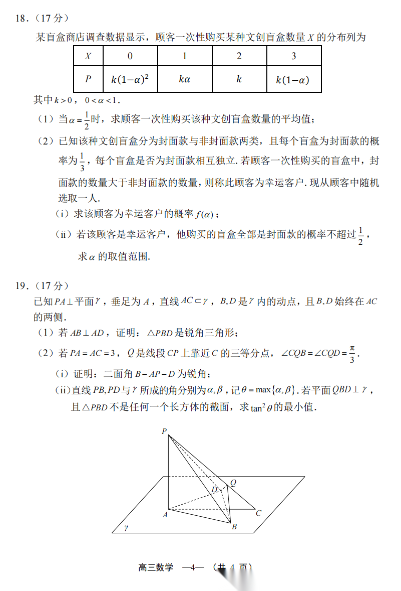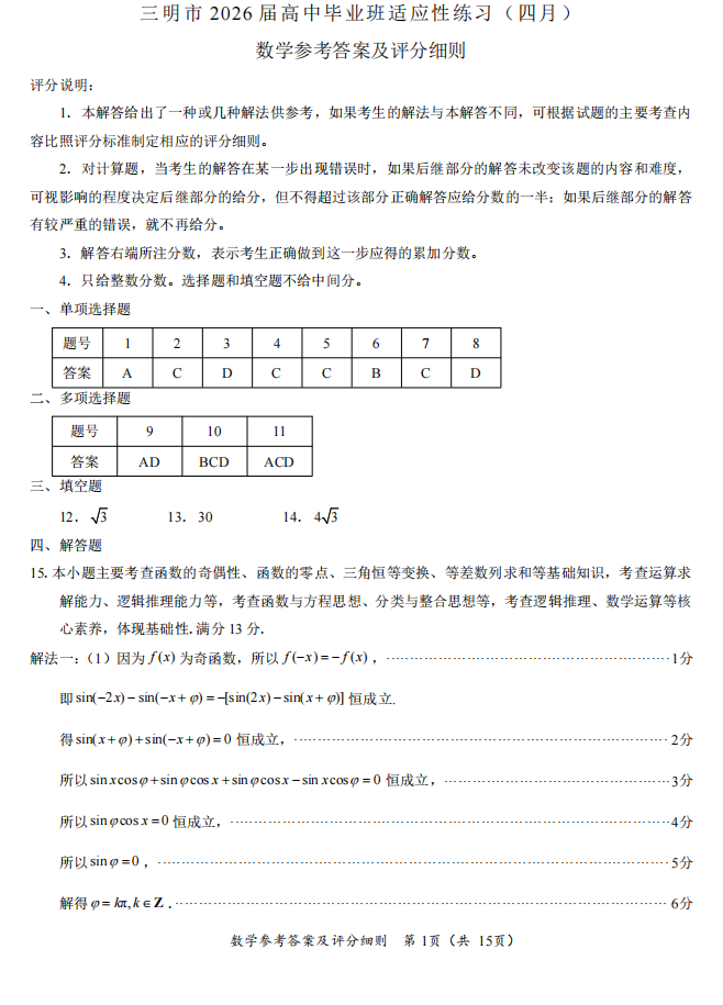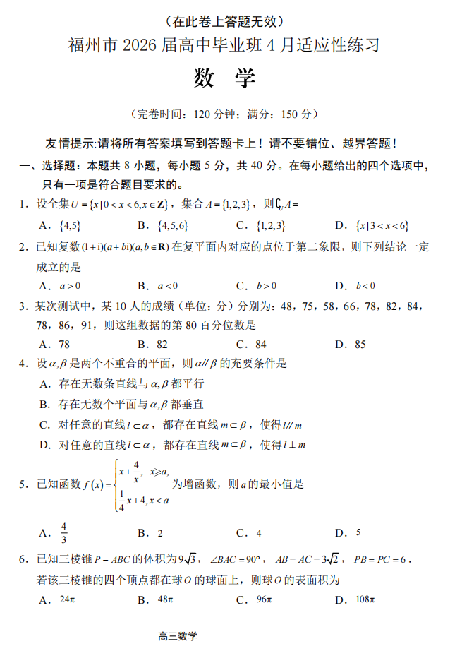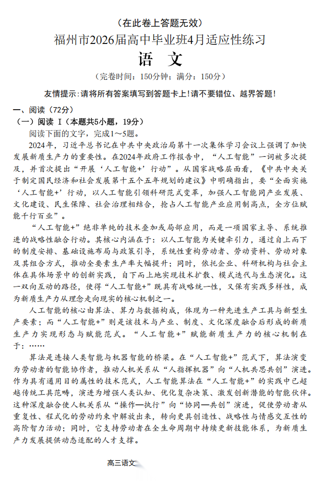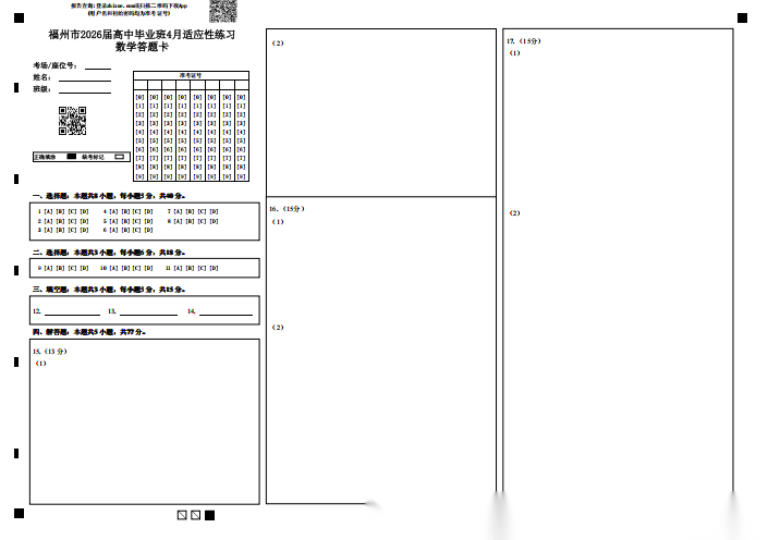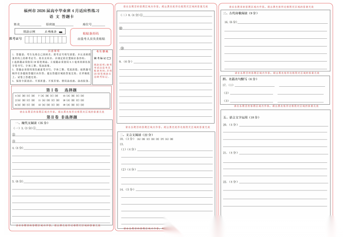 【福建卷】福建省2026届高中毕业班高三年级4月适应性练习(福建4月质检)(4.8-4.10) 数学语文试题卷+答题卡+答案