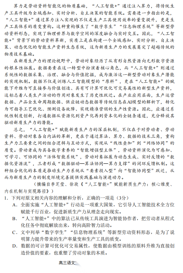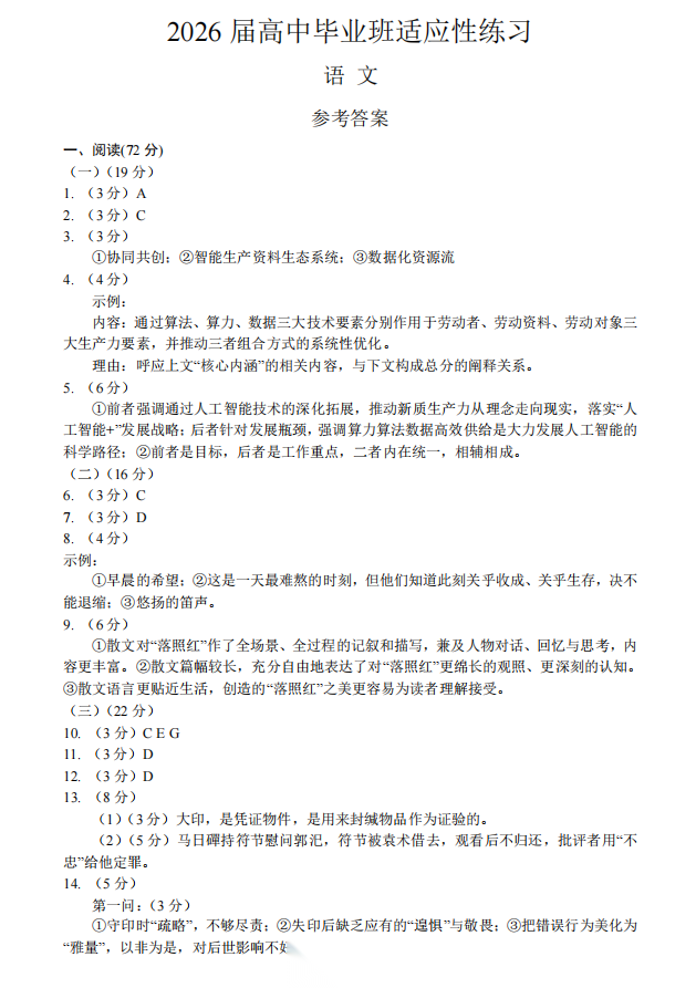 【北京卷】北京市昌平区2026年高三年级第一次统一练习(昌平高三一模)(4.7-4.10) 数学语文试题卷+答案 【北京卷】北京市昌平区2026年高三年级第一次统一练习(昌平高三一模)(4.7-4.10) 数学语文试题卷+答案