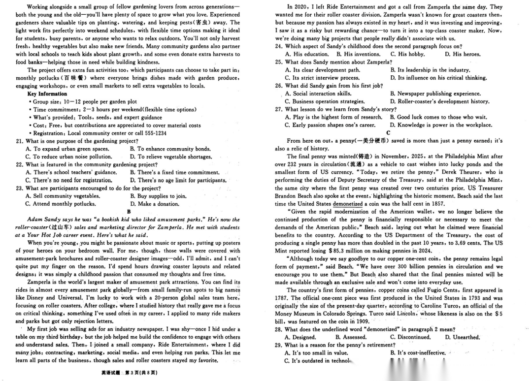 【北京卷】北京市西城区2026年高三年级统一测试试卷(西城高三一模)(4.7-4.10) 数学语文英语试题卷+答案 【北京卷】北京市西城区2026年高三年级统一测试试卷(西城高三一模)(4.7-4.10) 数学语文英语试题卷+答案