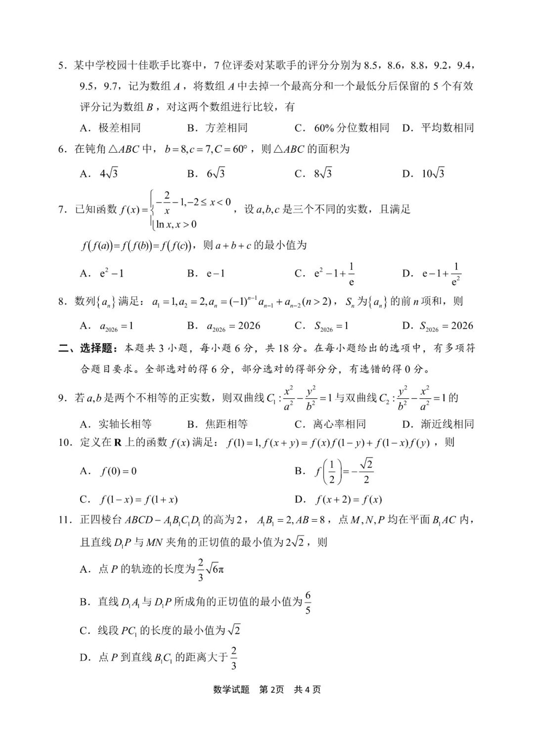 【福建卷】福建省2026届高中毕业班高三年级4月适应性练习(福建4月质检)(4.8-4.10) 数学语文试题卷+答题卡+答案 【福建卷】福建省2026届高中毕业班高三年级4月适应性练习(福建4月质检)(4.8-4.10) 数学语文试题卷+答...