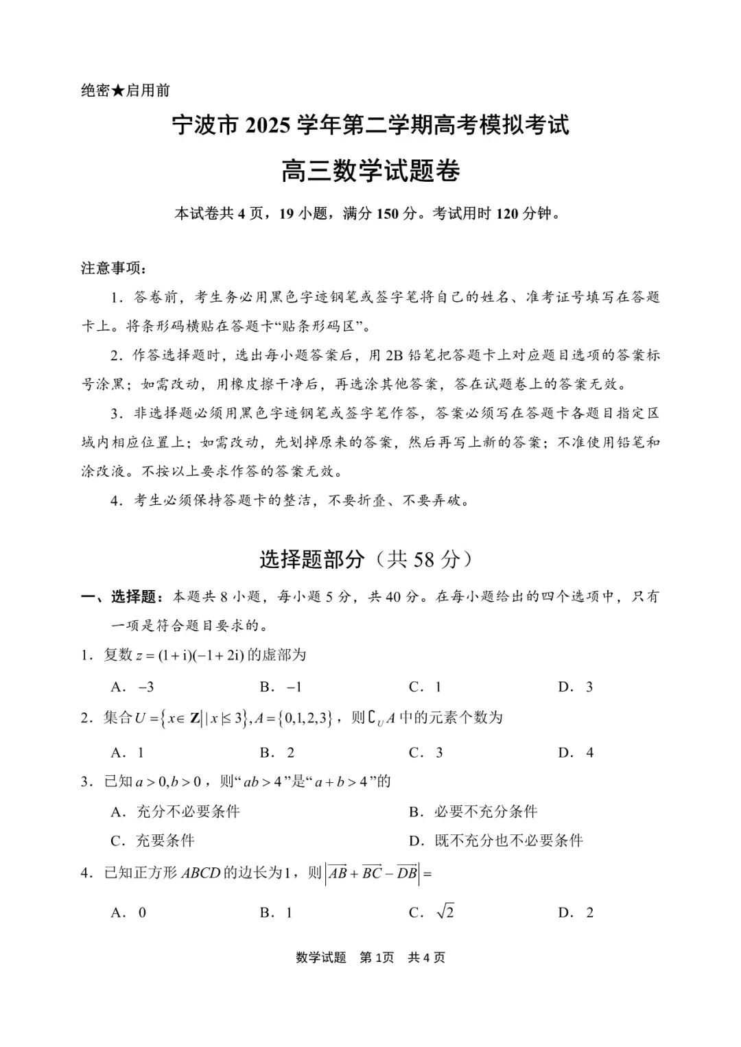浙江省宁波市2025-2026学年高三下学期高考模拟考试(二模)