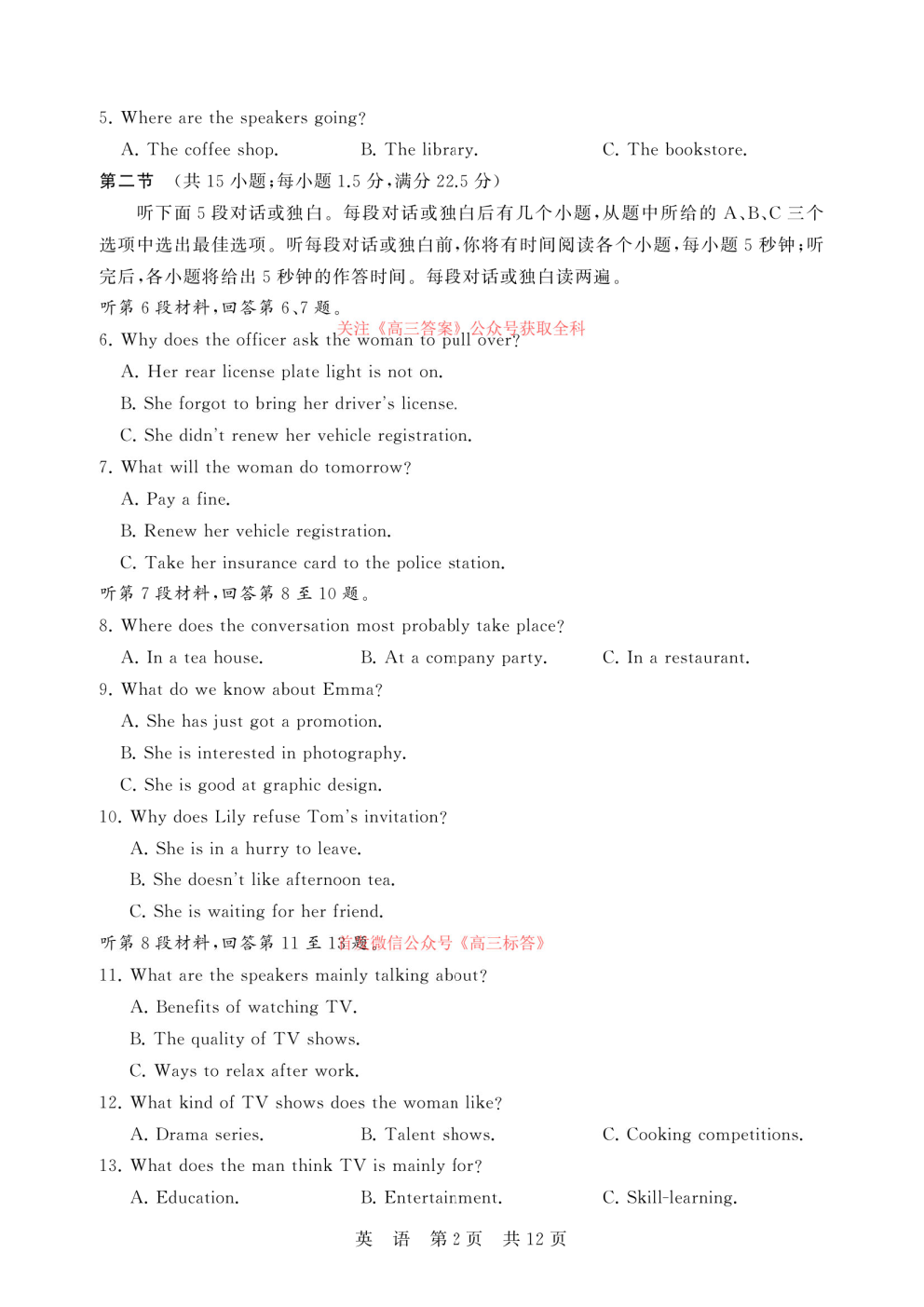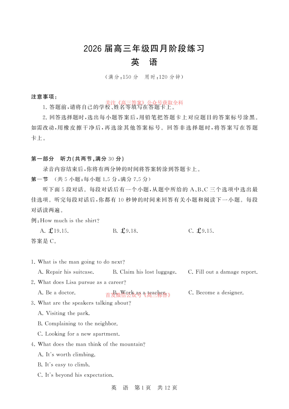【北京卷】北京市门头沟区2026年高三年级综合练习((门头沟高三一模)(3.30-4.2) 全科试题卷(缺史政)+答案 【北京卷】北京市门头沟区2026年高三年级综合练习((门头沟高三一模)(3.30-4.2) 全科试题卷(缺史政)+答...