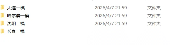 2026长春二模、大连一模、沈阳二模、哈尔滨一模全科下载