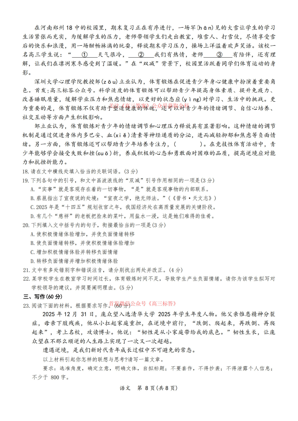 【重庆二模】2026重庆高三康德4月二诊答案 【重庆二模】2026重庆高三康德4月二诊答案