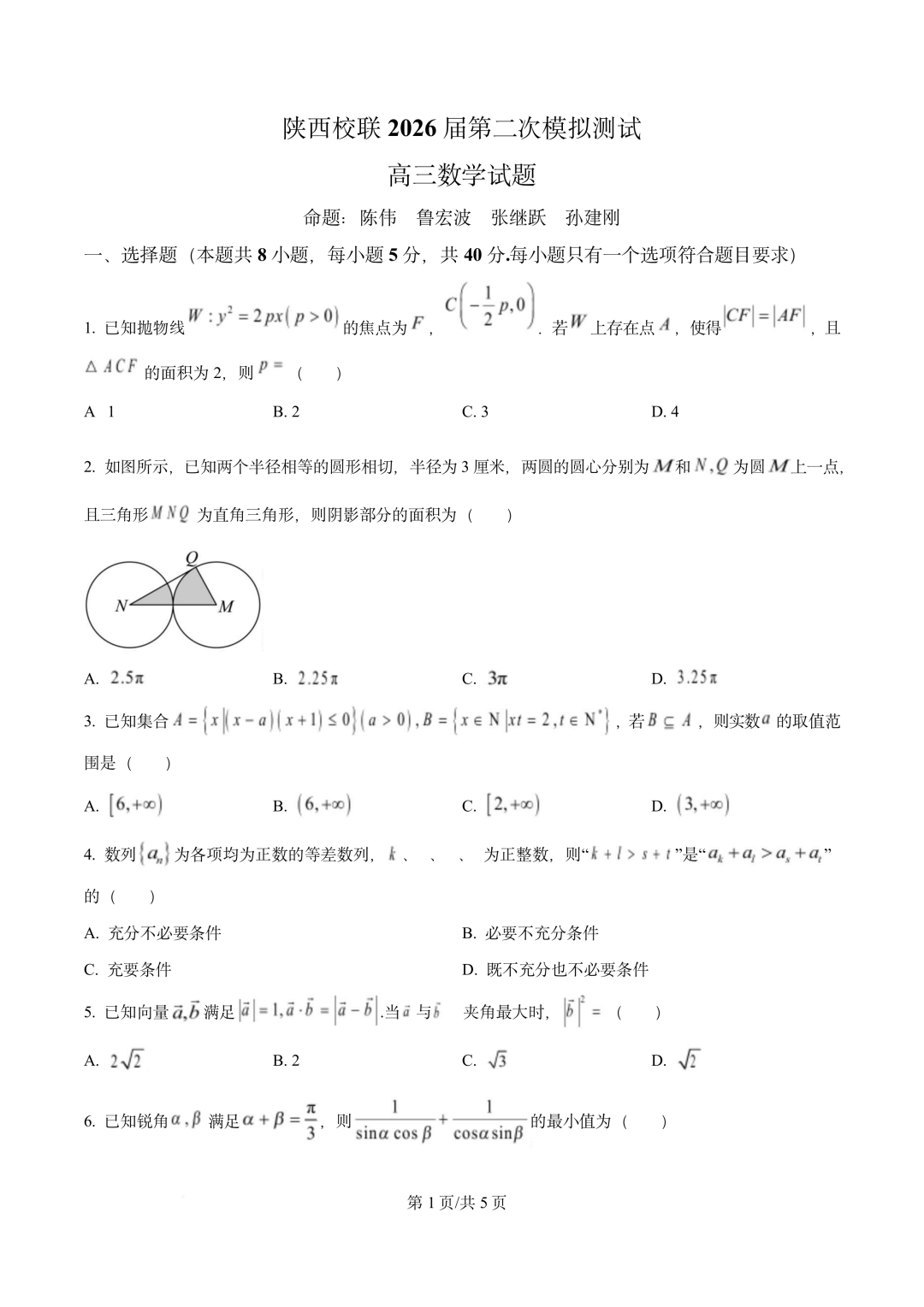 陕西省校联(西安市,渭南市,榆林市)等多校2026届高三第二次模拟测试