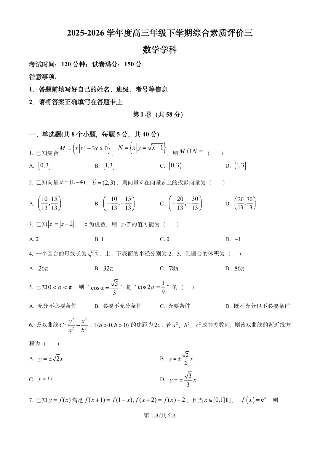 河北省衡水中学2026届高三下学期综合素质评价(三)