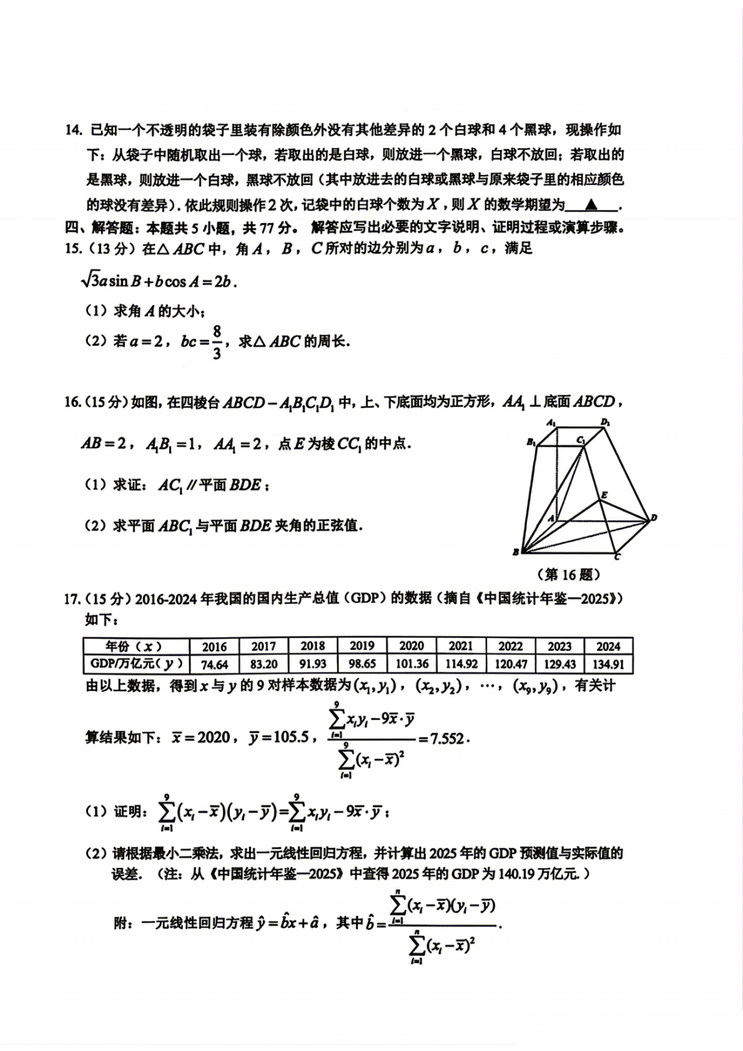 【嘉兴二模全科】浙江省嘉兴市2026届高三教学测试 【嘉兴二模全科】浙江省嘉兴市2026届高三教学测试