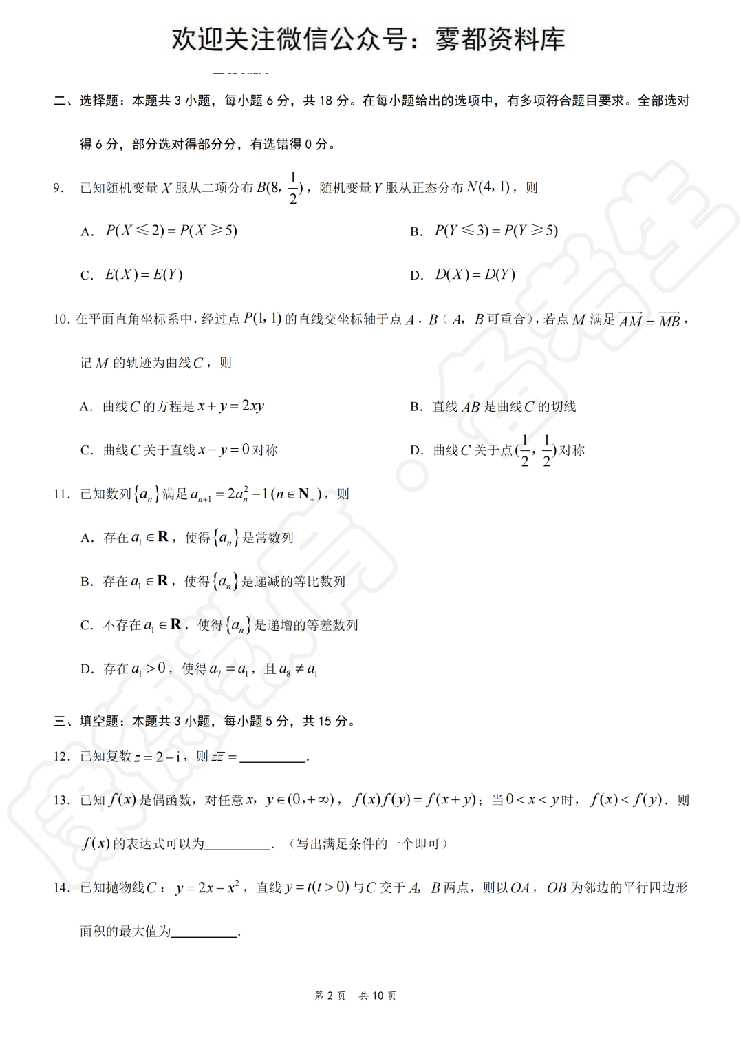 2026届重庆高三康德卷二诊数学试题及答案