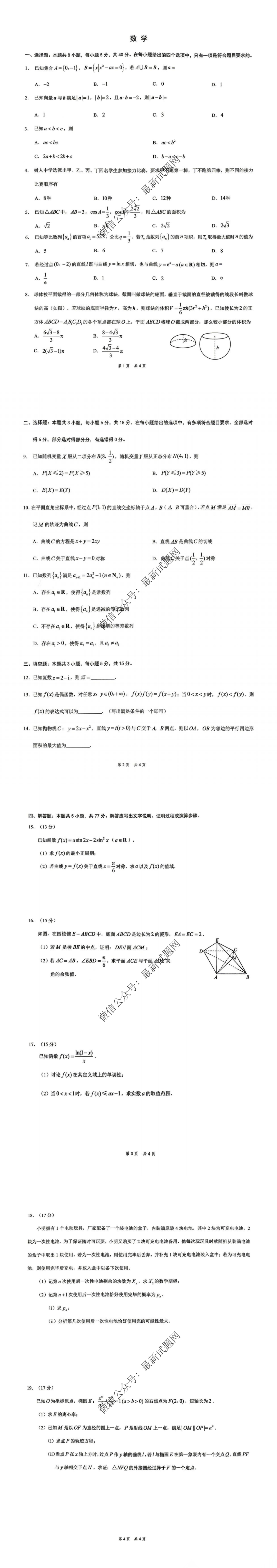 2026届重庆高三康德卷二诊数学试题及答案 2026届重庆高三康德卷二诊数学试题及答案