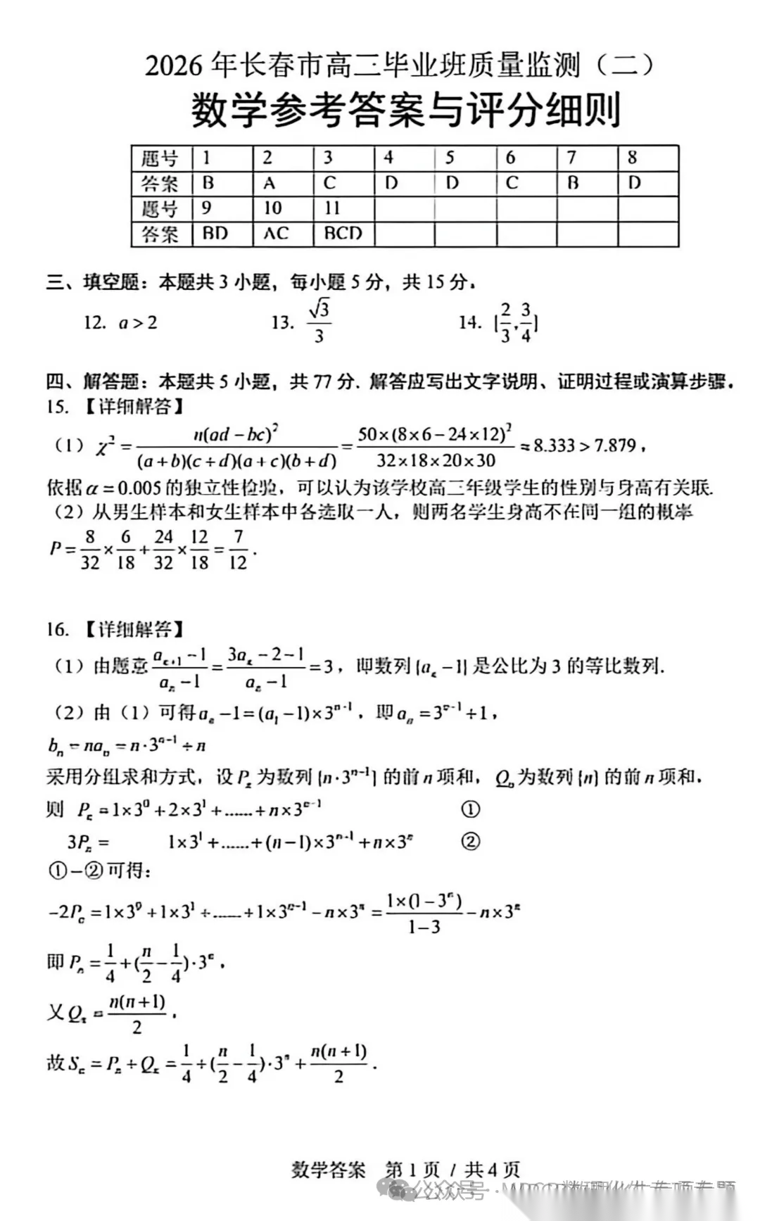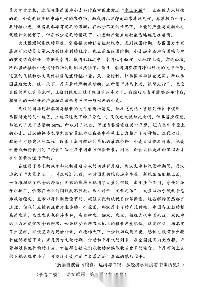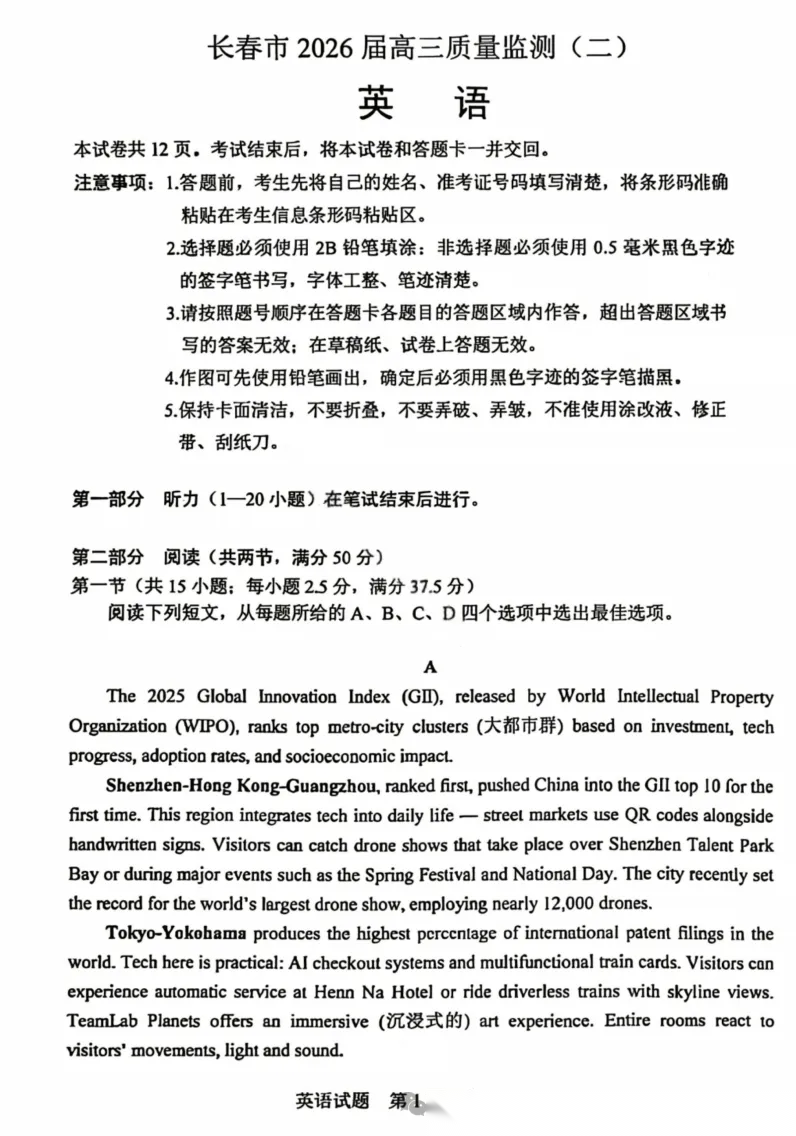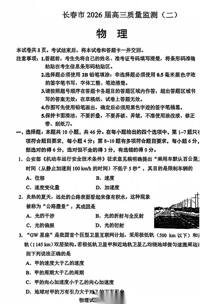 【黑吉辽蒙卷】吉林省长春市2026届高三年级质量监测(二)(长春二模)(4.7-4.9) 全科试题卷+答案