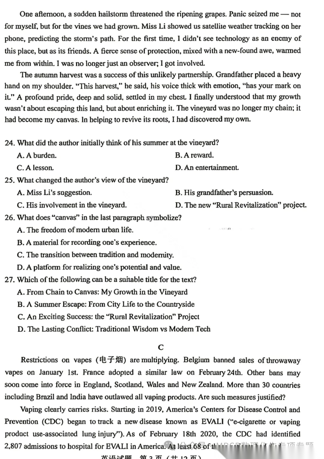 2026届重庆高三康德卷二诊语文试题及答案 2026届重庆高三康德卷二诊语文试题及答案