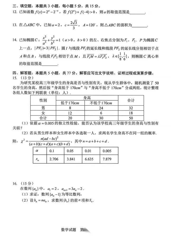 2026届重庆高三康德卷二诊数学试题及答案 2026届重庆高三康德卷二诊数学试题及答案