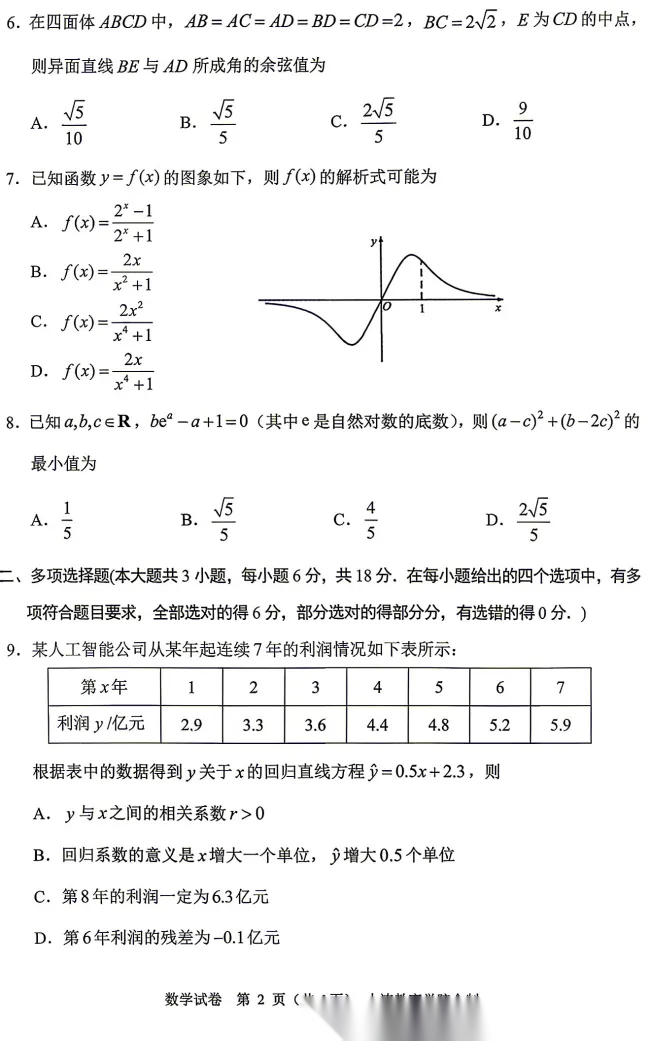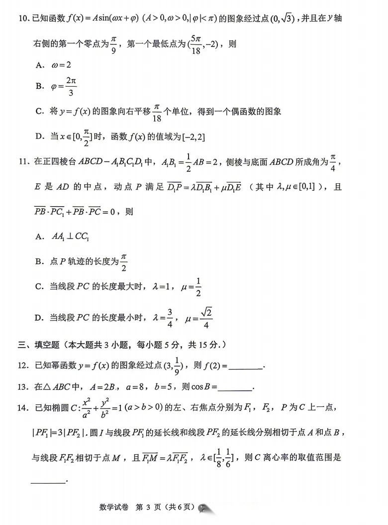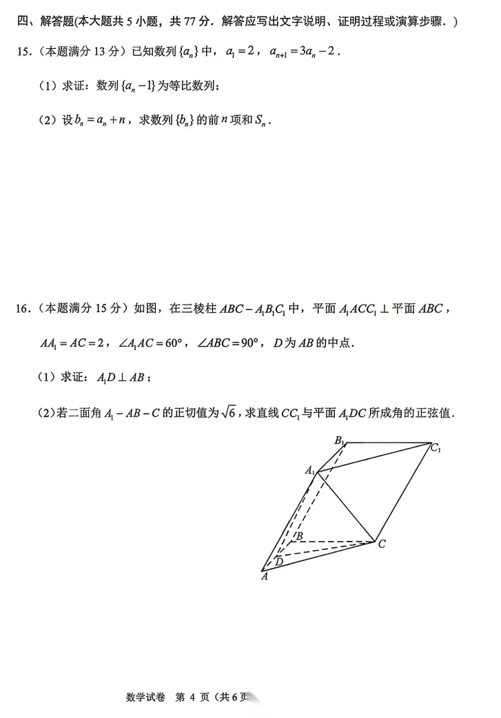 2026届重庆高三康德卷二诊数学试题及答案 2026届重庆高三康德卷二诊数学试题及答案
