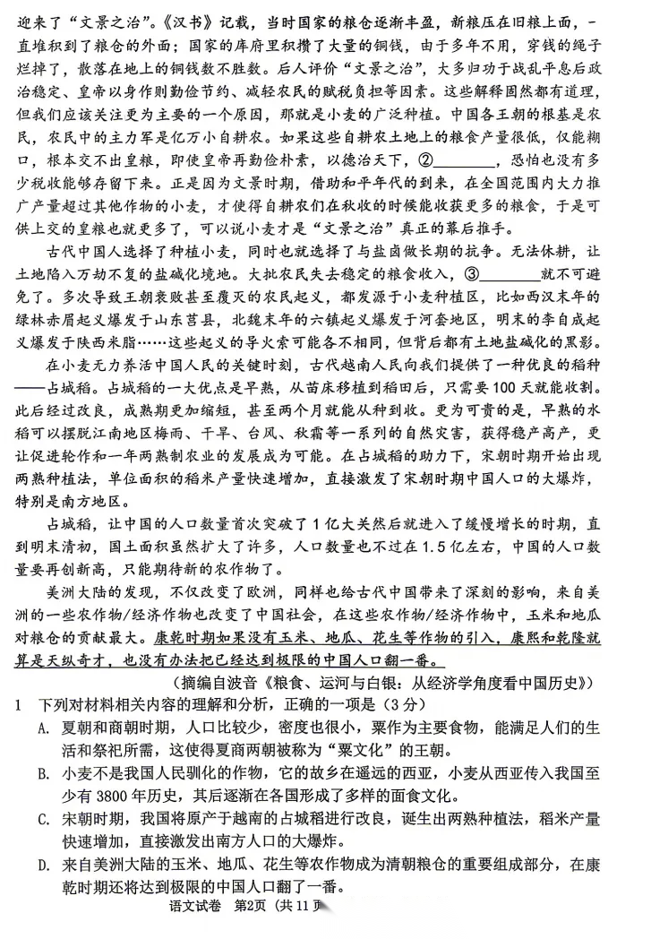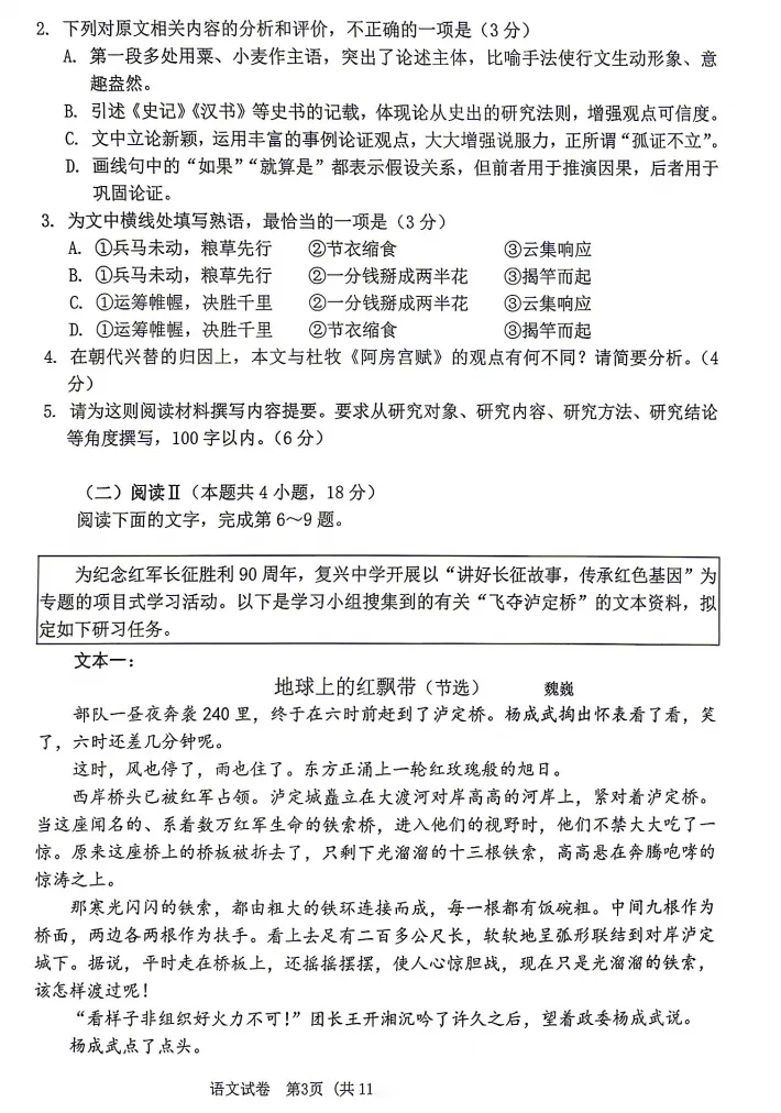 2026届重庆高三康德卷二诊语文试题及答案 2026届重庆高三康德卷二诊语文试题及答案
