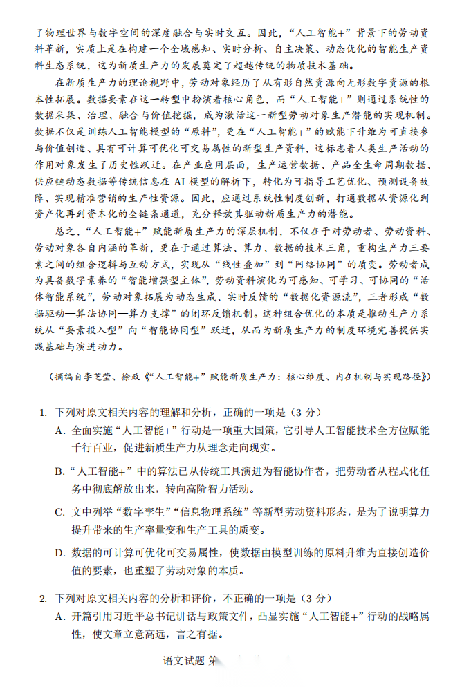 【重庆卷】重庆市2026年普通高等学校招生全国统一考试高三第二次联合诊断考试(康德二诊)(4.9-4.11) 数学语文试题卷+答案 【重庆卷】重庆市2026年普通高等学校招生全国统一考试高三第二次联合诊断考试(康德二诊)(4.9-4.11) 数学...