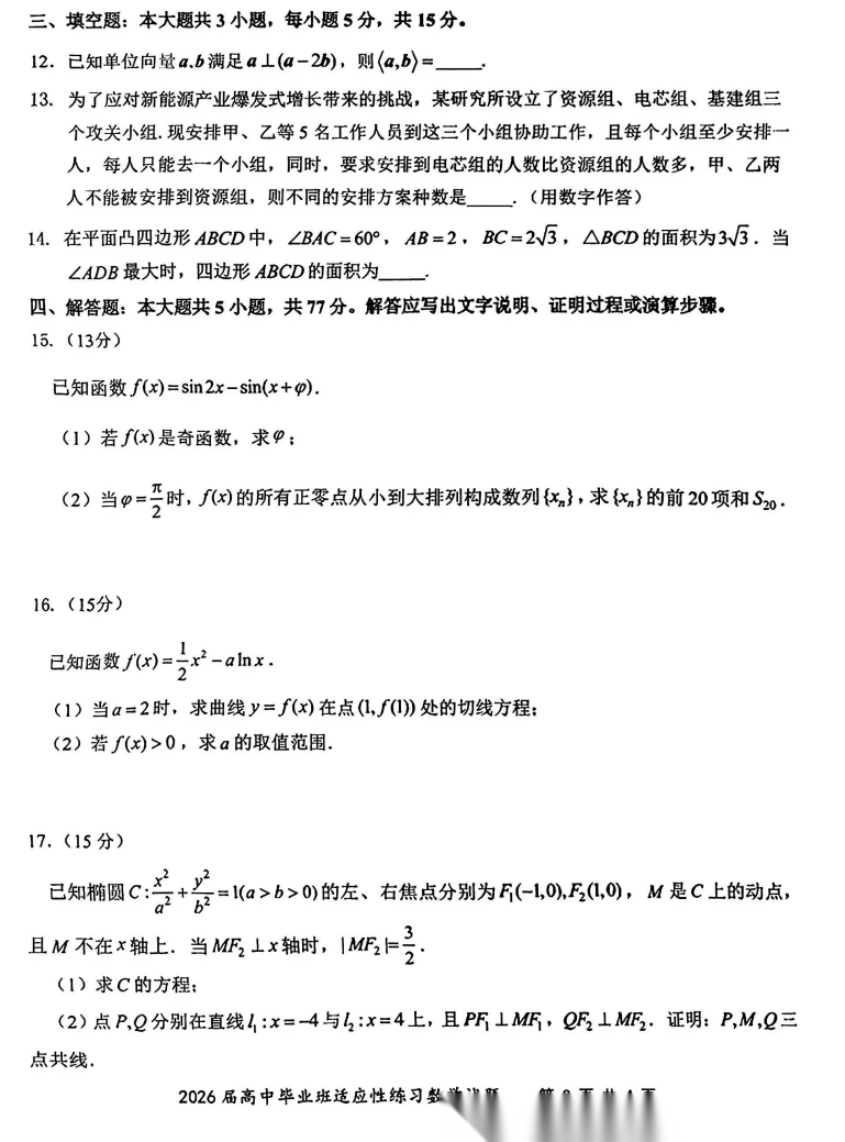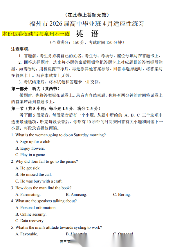 【福建卷】【泉州版】福建省泉州市2026届高中毕业班高三年级模拟考试(二)(泉州二检)(4.8-4.10) 数学物理英语语文历史试题卷+答案 【福建卷】【泉州版】福建省泉州市2026届高中毕业班高三年级模拟考试(二)(泉州二检)(4.8-4.10) 数学物理英语...