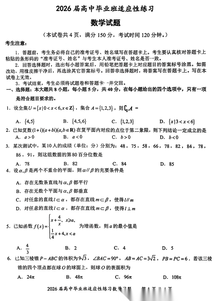 【福建卷】【宁德版】福建省宁德市2026届高中毕业班4月适应性练习考试(宁德二检)(4.8-4.10) 数学物理英语流域为历史试题卷+答案 【福建卷】【宁德版】福建省宁德市2026届高中毕业班4月适应性练习考试(宁德二检)(4.8-4.10) 数学物理英语流...