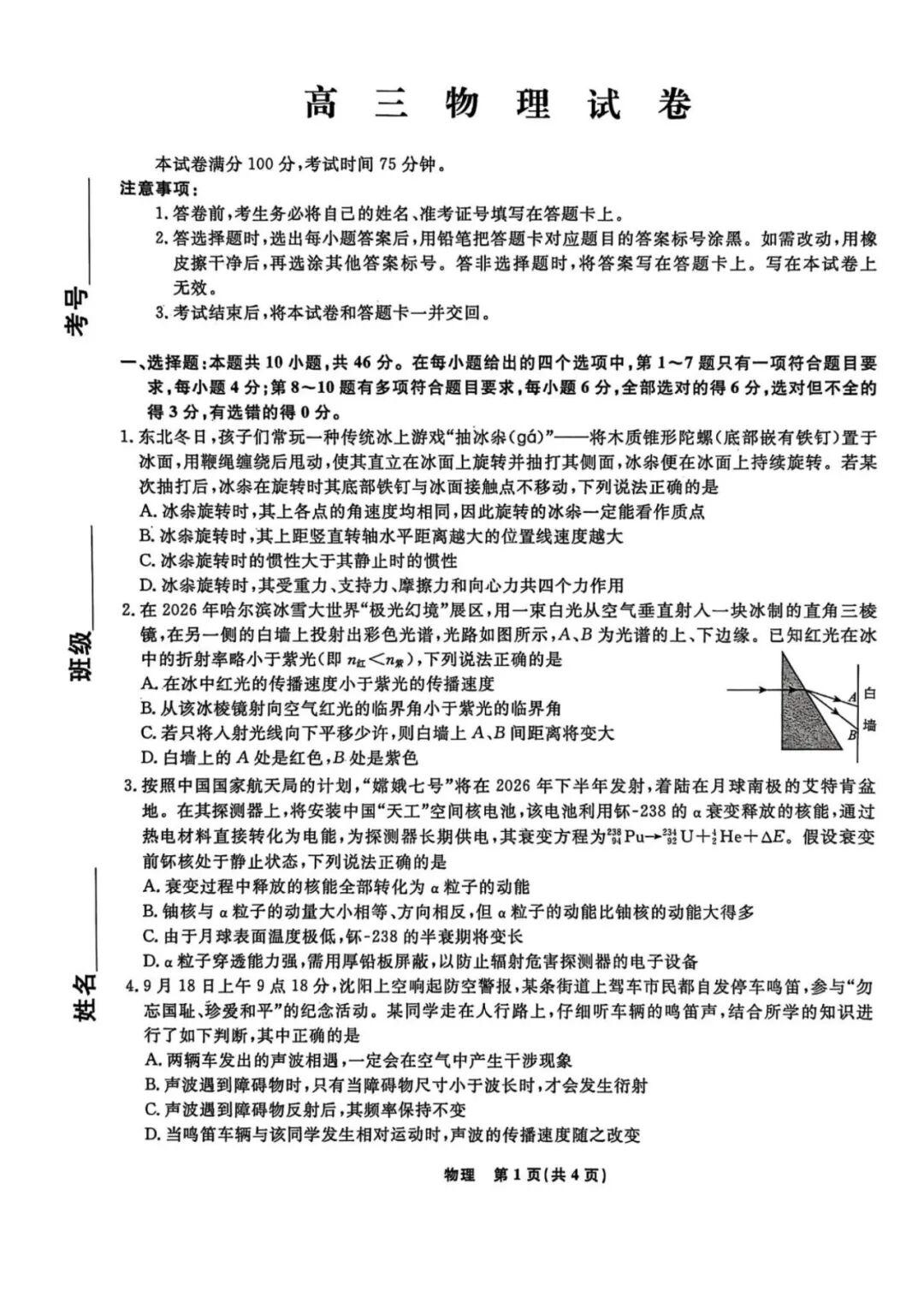 【黑吉辽蒙卷】黑龙江省哈尔滨市2026年高考高三年级第一次模拟考试(哈尔滨一模)(4.7-4.9) 全科试题卷 +答案 【黑吉辽蒙卷】黑龙江省哈尔滨市2026年高考高三年级第一次模拟考试(哈尔滨一模)(4.7-4.9) 全科试题卷 ...