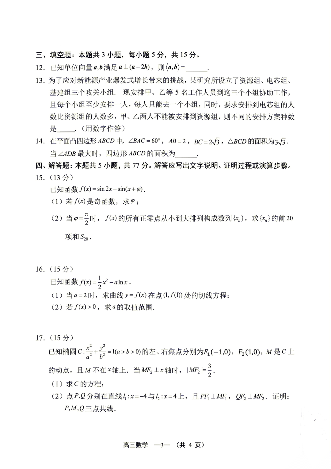 河北省衡水中学2026届高三下学期综合素质评价三 河北省衡水中学2026届高三下学期综合素质评价三