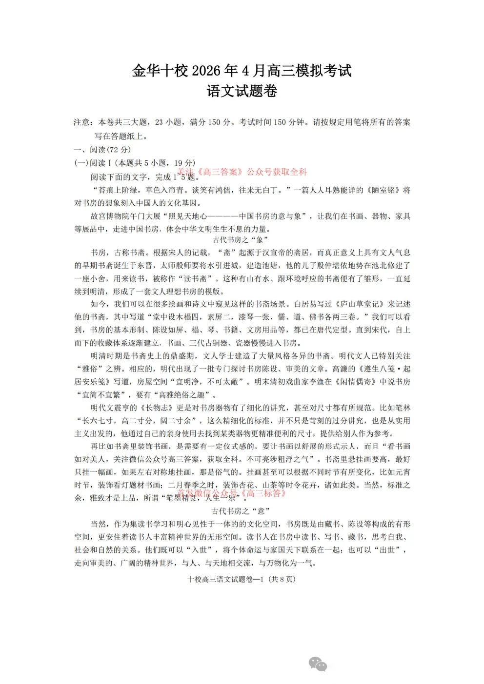 金华十校2026年4月高三模拟考试全科下载