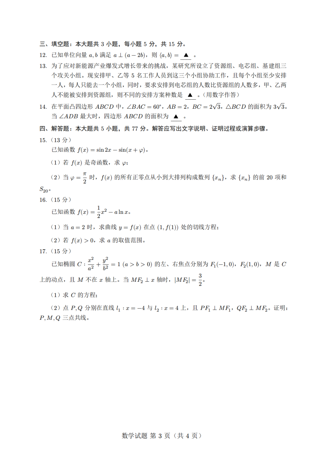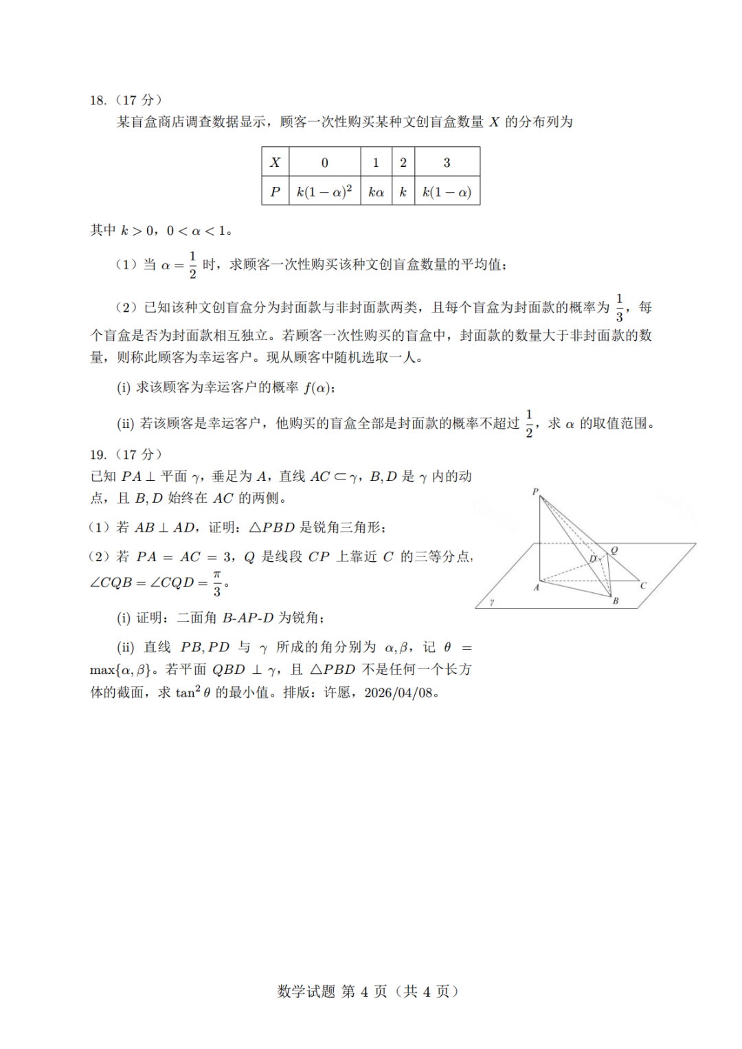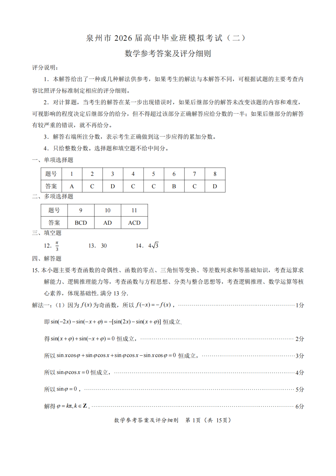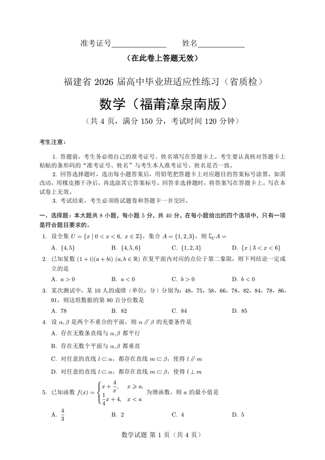 【福建省质检全科】福建省2026届高中毕业班4月适应性练习(泉州、福州、三明等市)