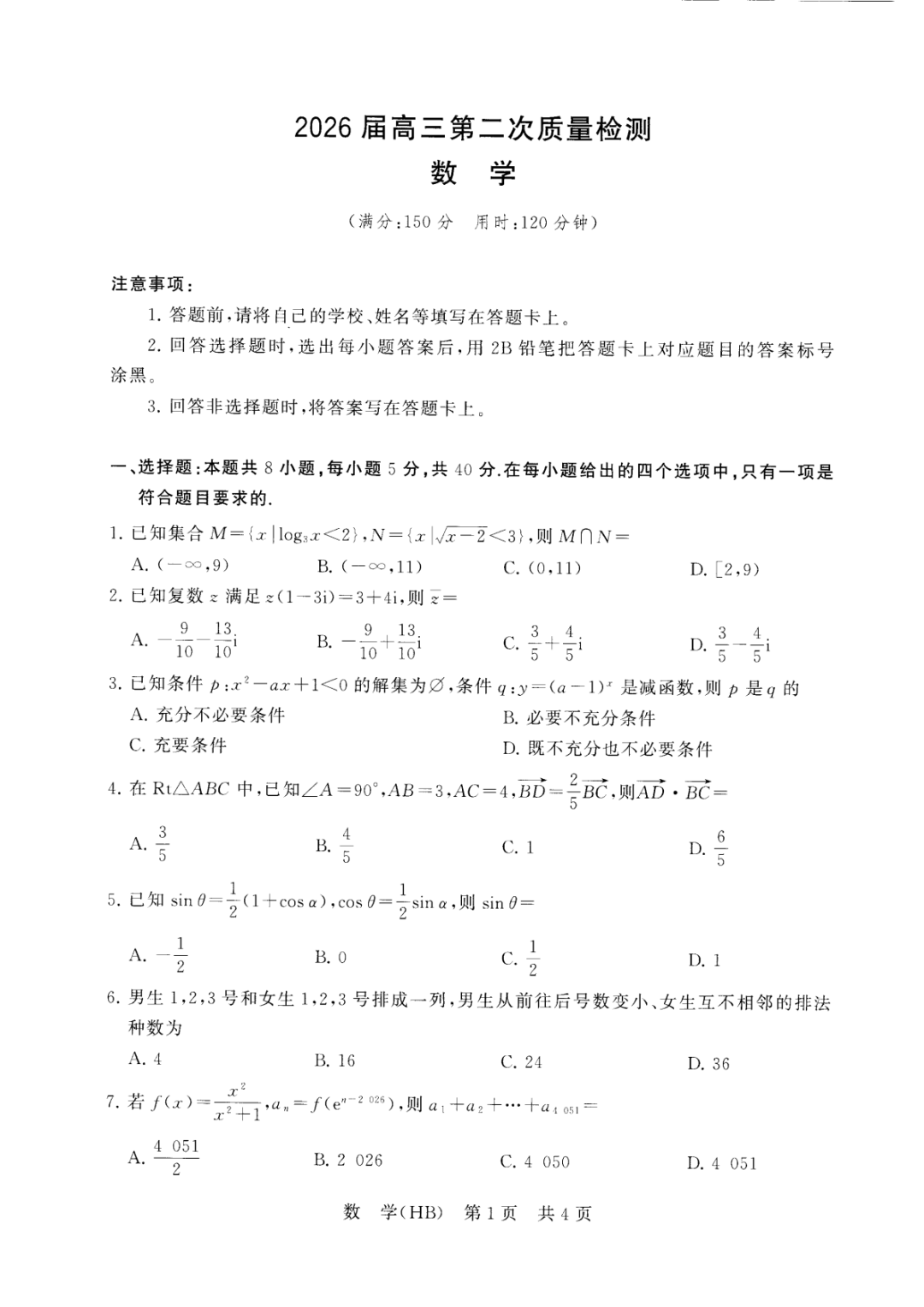A10联盟2026届高三4月质量评估下载 A10联盟2026届高三4月质量评估下载