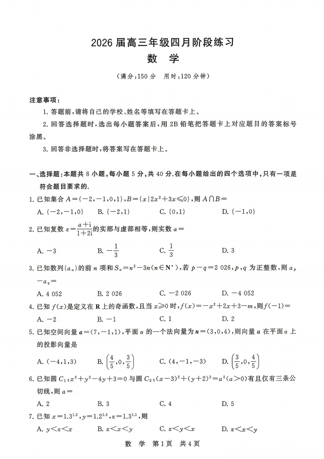 【湛江二模全科】广东省湛江市2026年普通高考测试(二) 【湛江二模全科】广东省湛江市2026年普通高考测试(二)