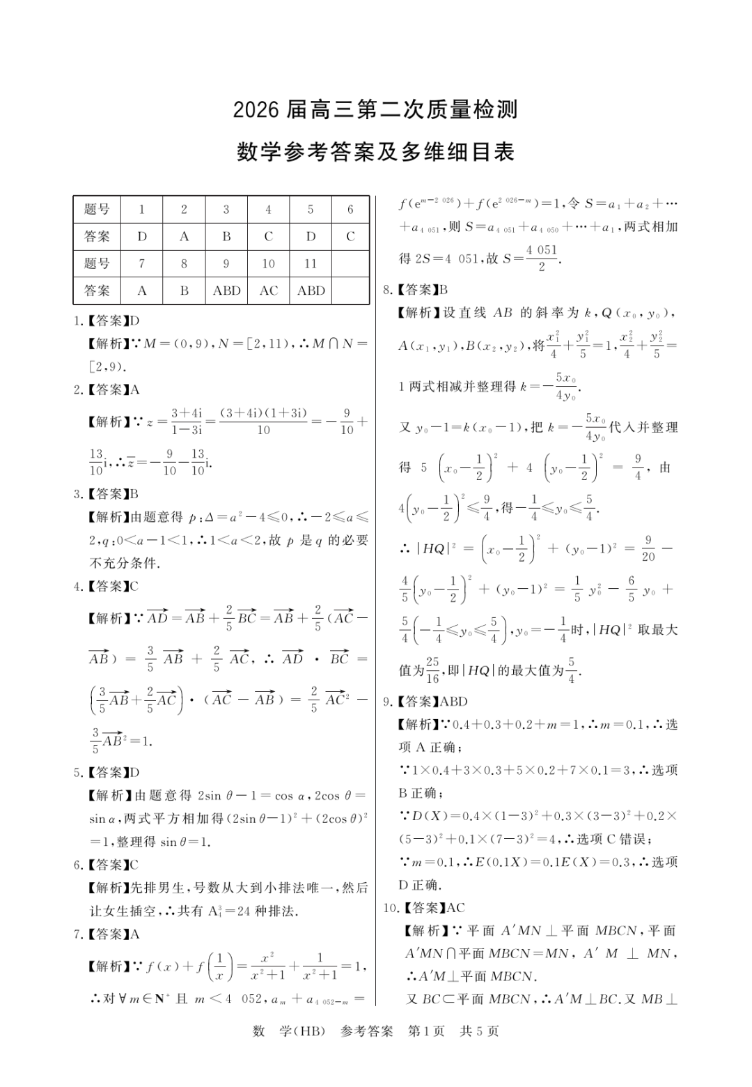 【重庆二模】2026重庆高三康德4月二诊答案 【重庆二模】2026重庆高三康德4月二诊答案