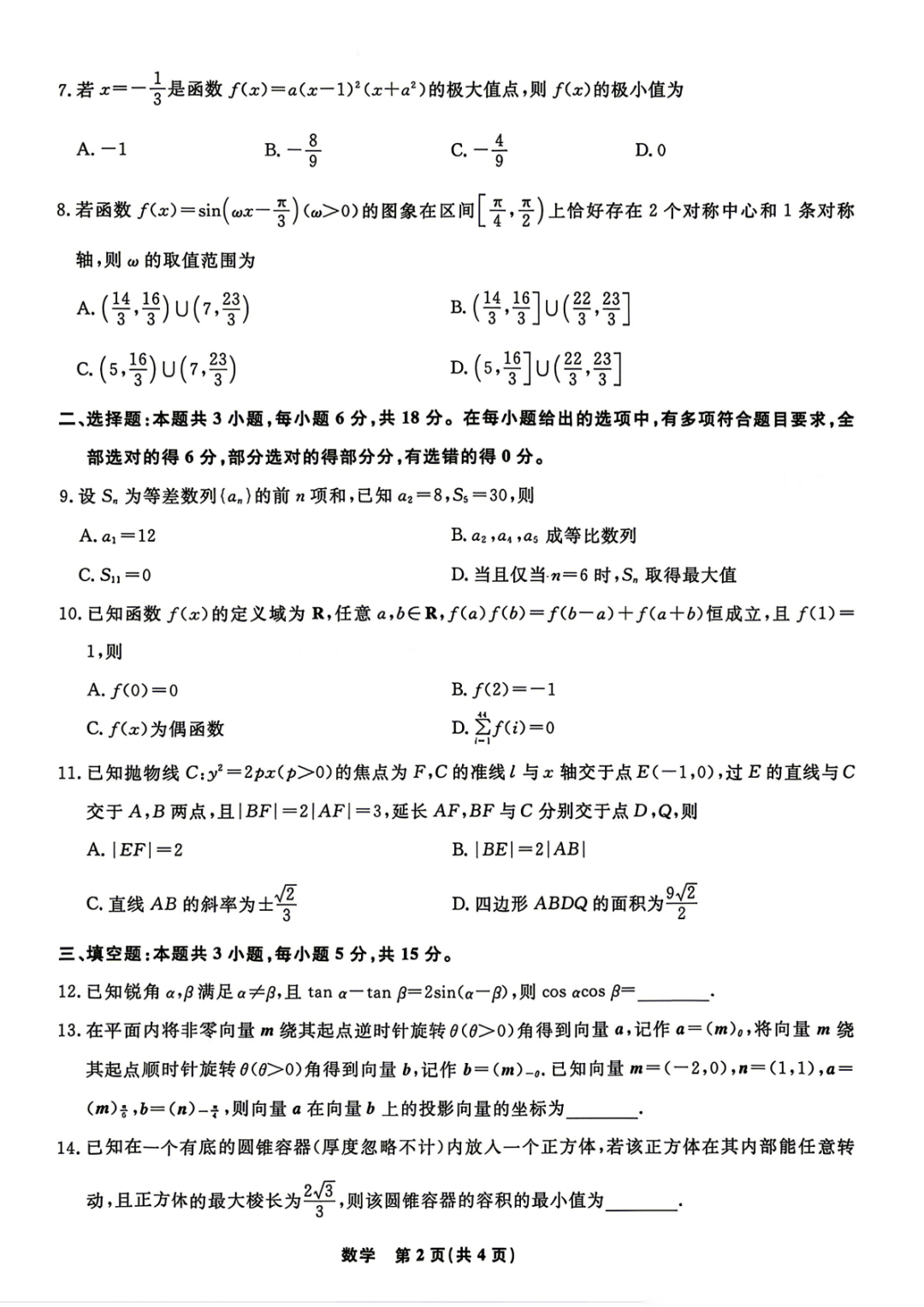 【重庆二模】2026重庆高三康德4月二诊答案 【重庆二模】2026重庆高三康德4月二诊答案