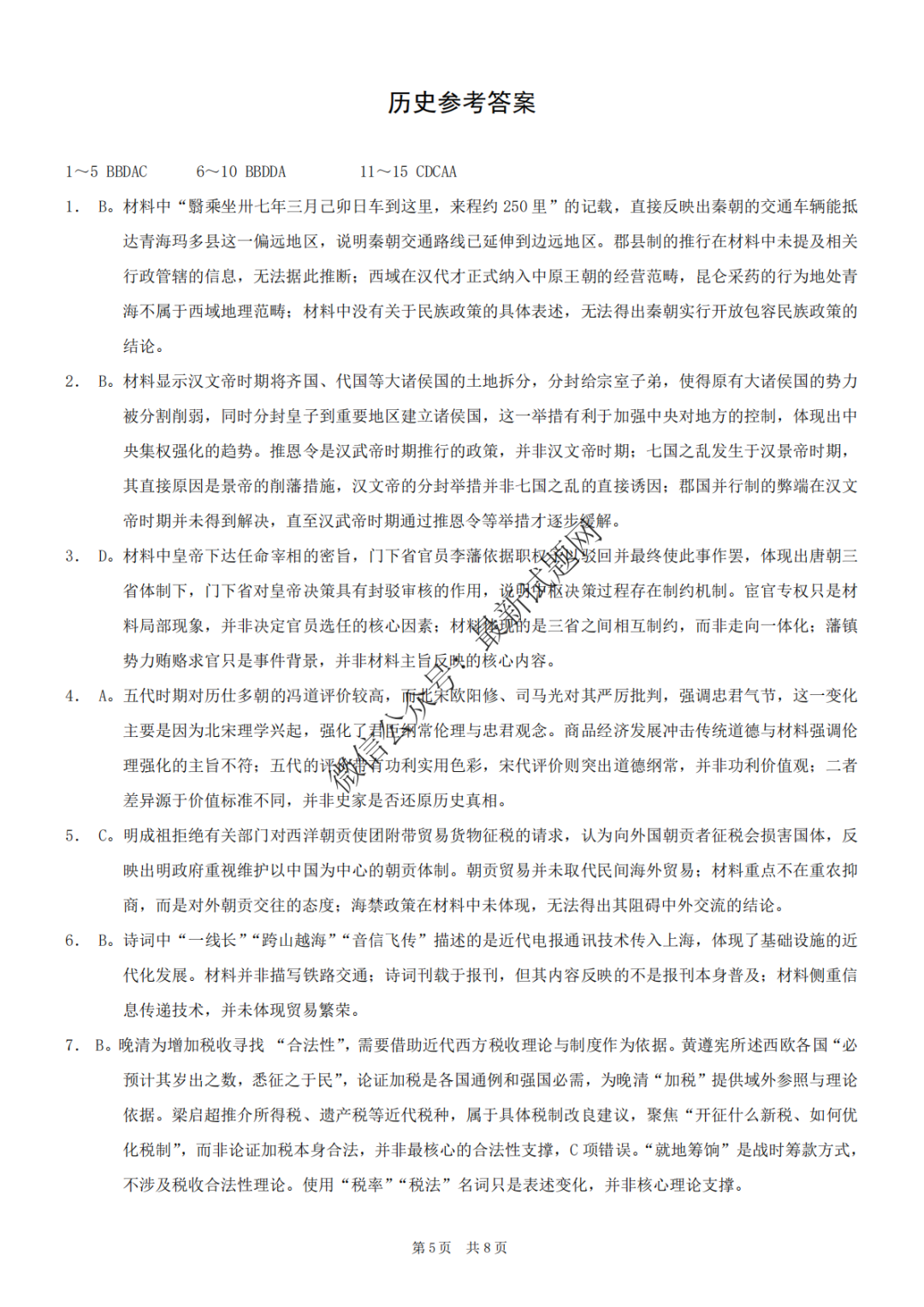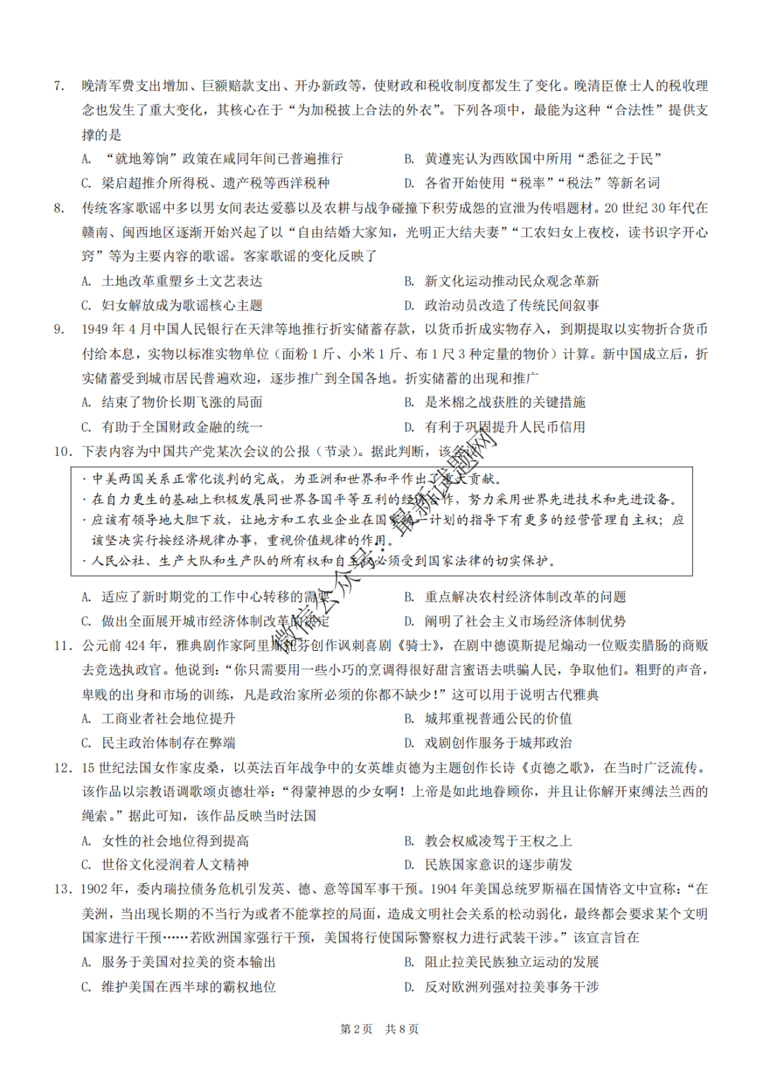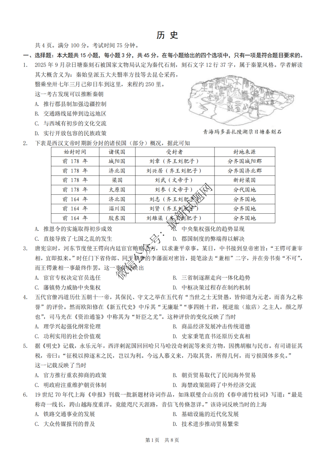 2026届重庆高三康德卷二诊历史试题及答案 2026届重庆高三康德卷二诊历史试题及答案