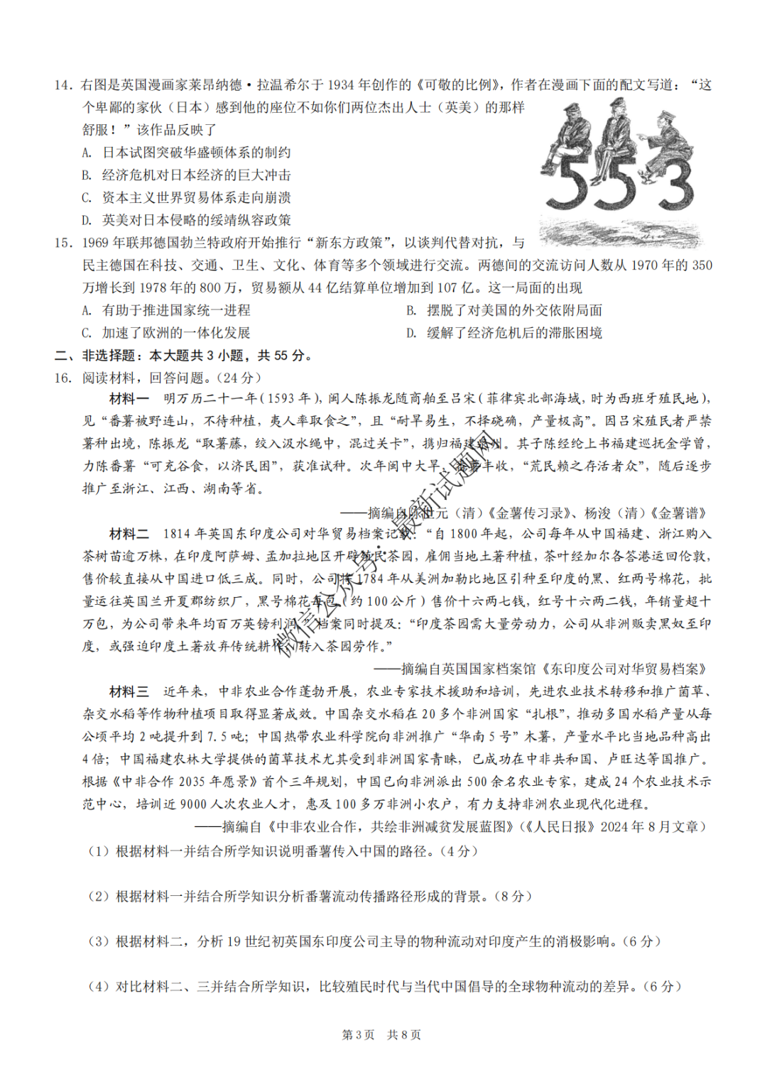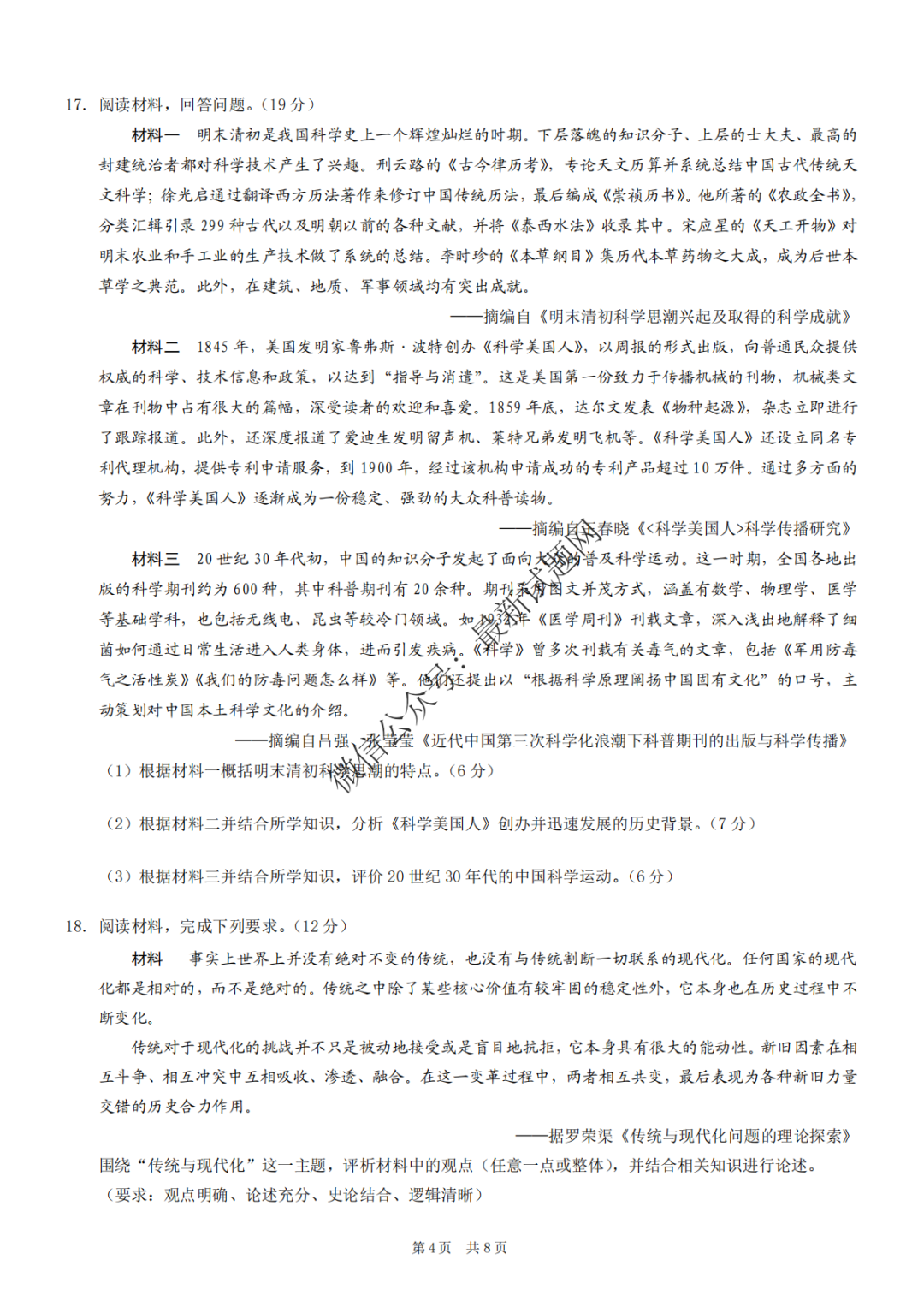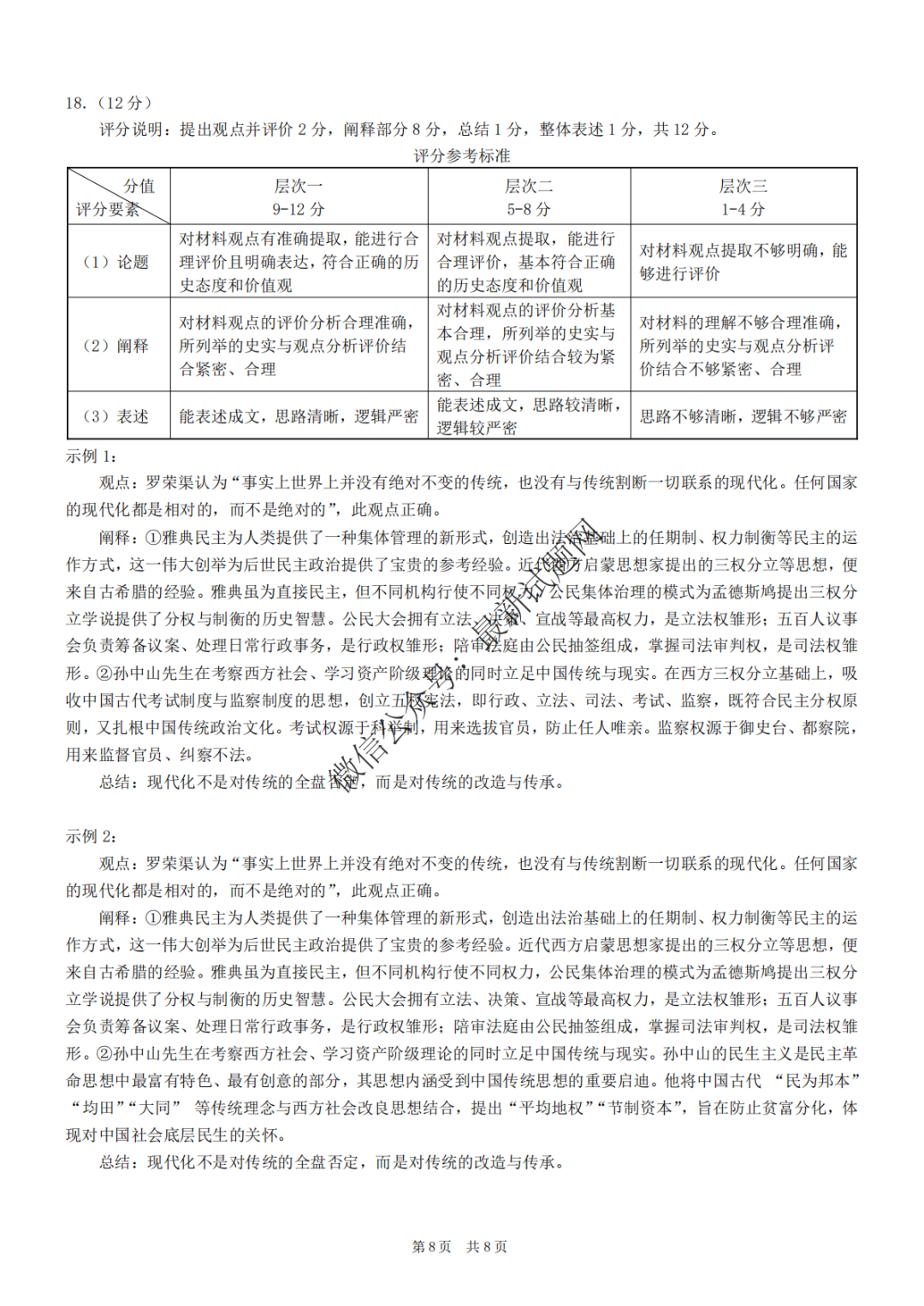 2026届重庆高三康德卷二诊历史试题及答案 2026届重庆高三康德卷二诊历史试题及答案