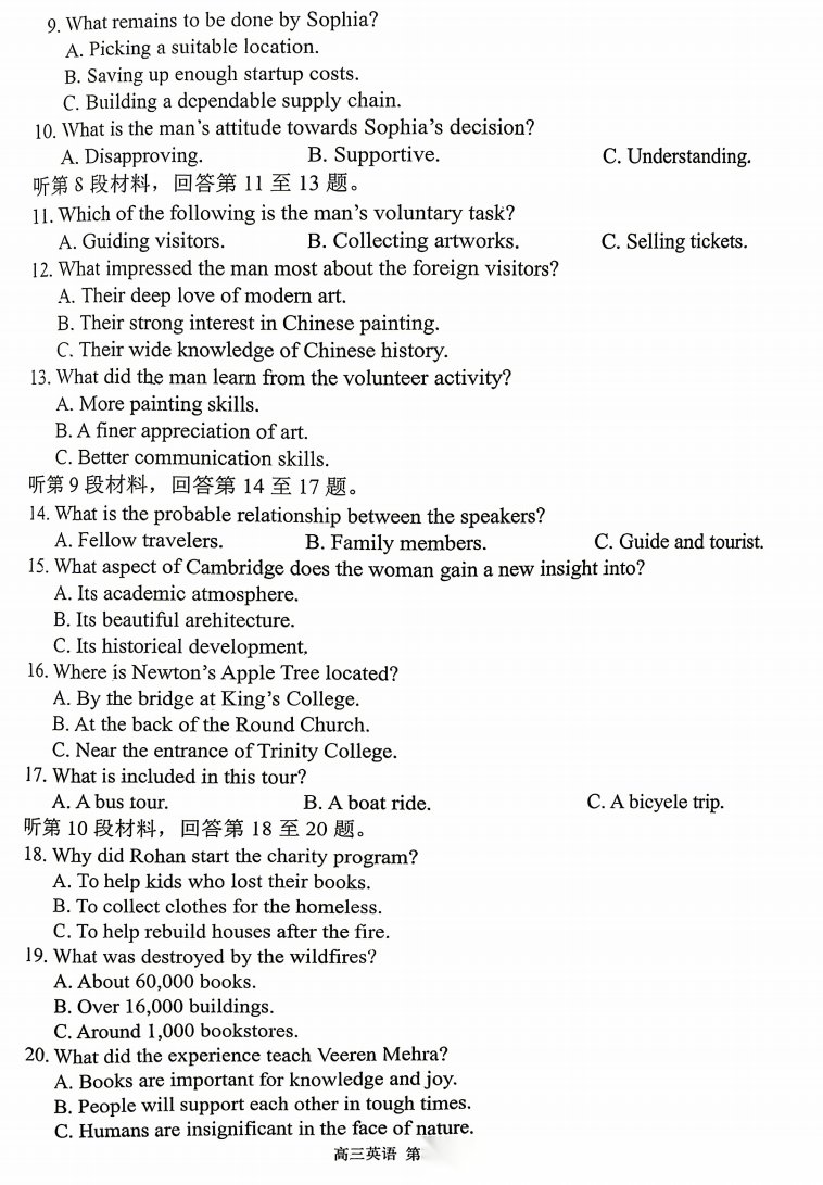 2026年九师联盟高三4月9日学业评估 2026年九师联盟高三4月9日学业评估