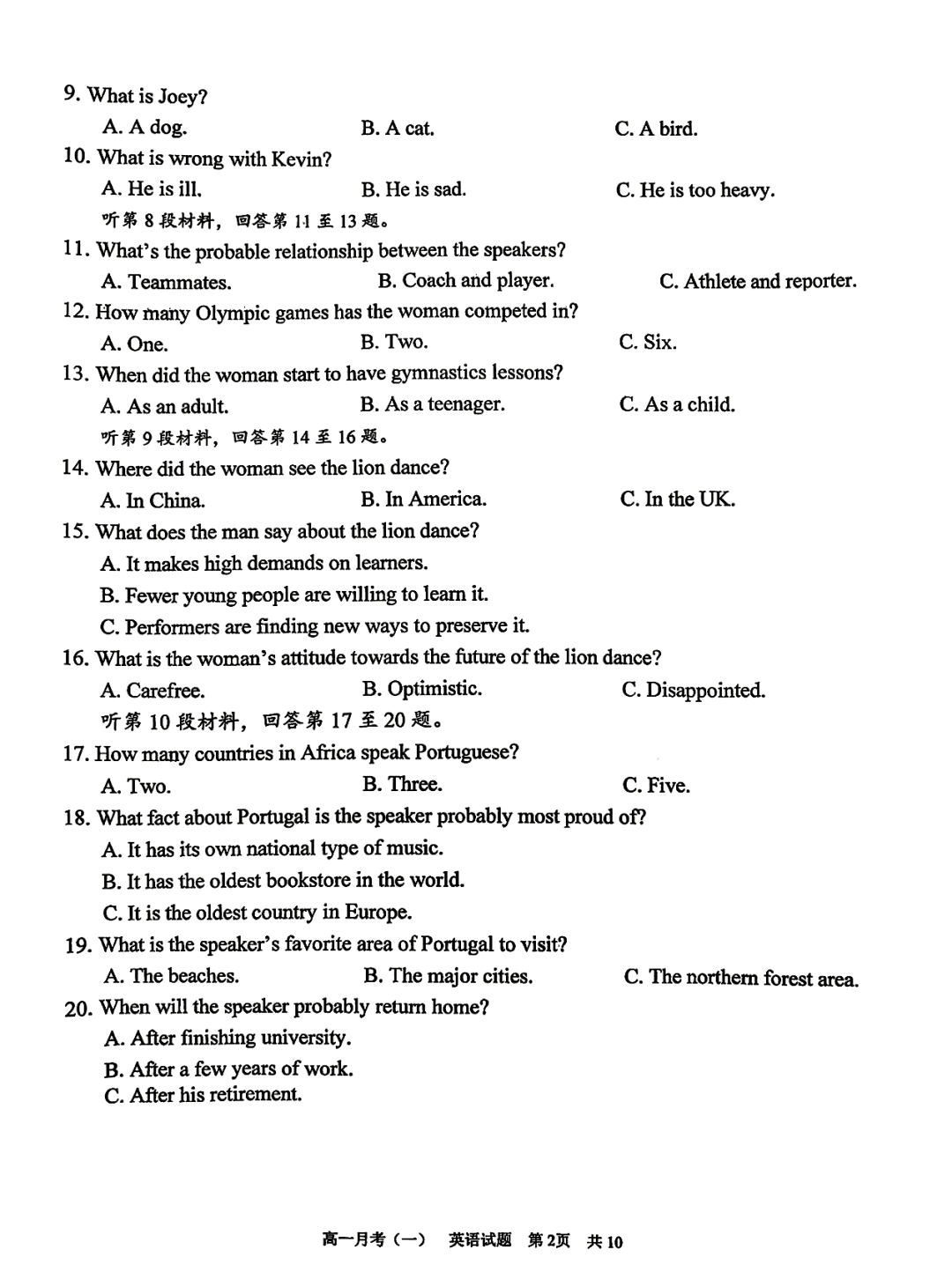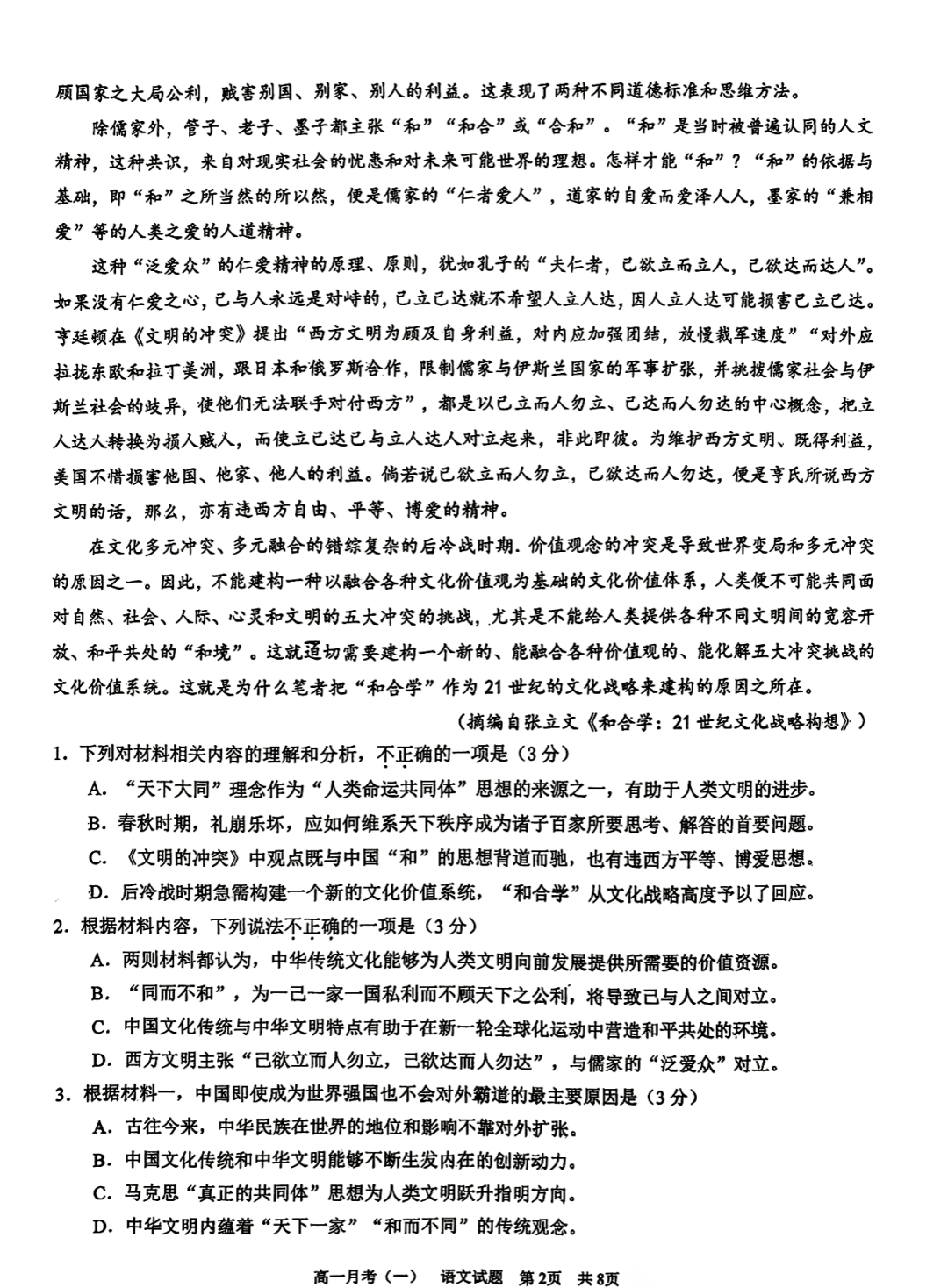 2026年九师联盟高三4月9日学业评估 2026年九师联盟高三4月9日学业评估