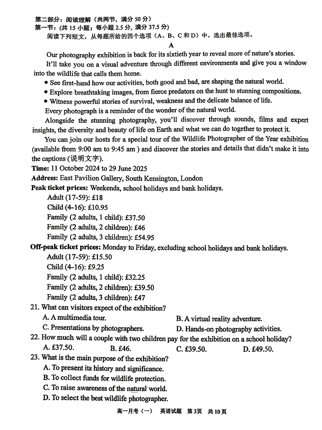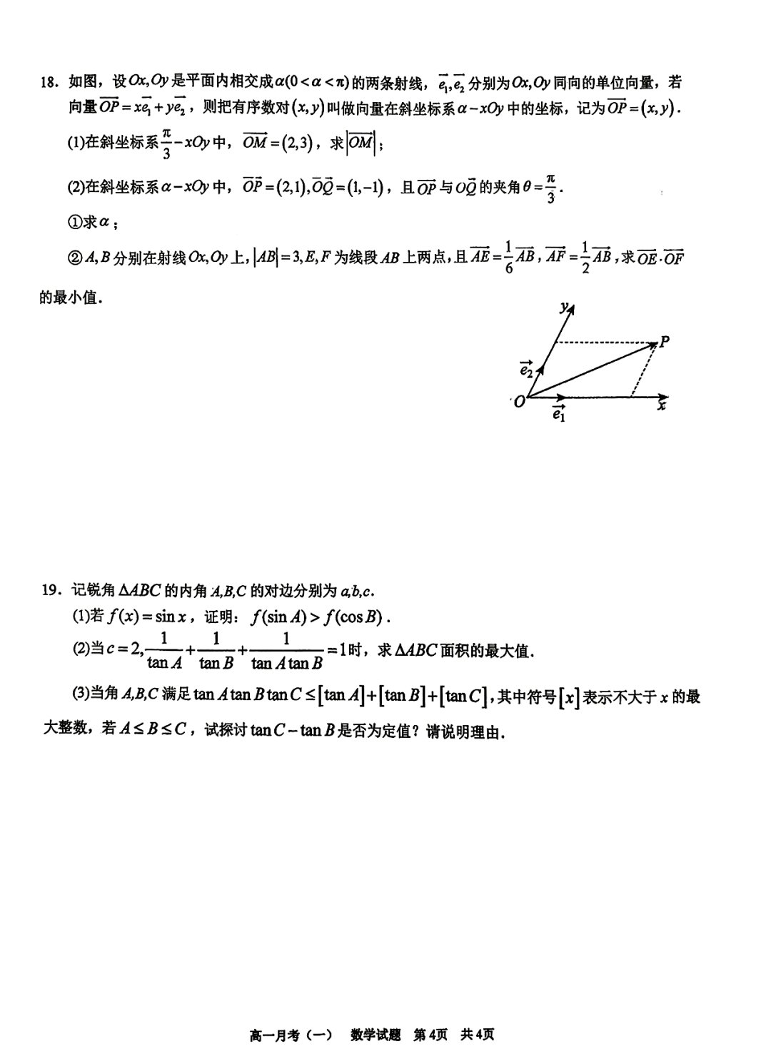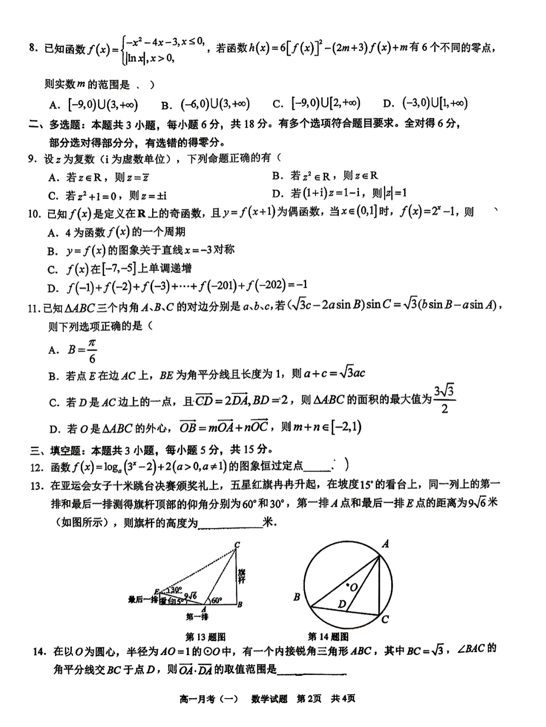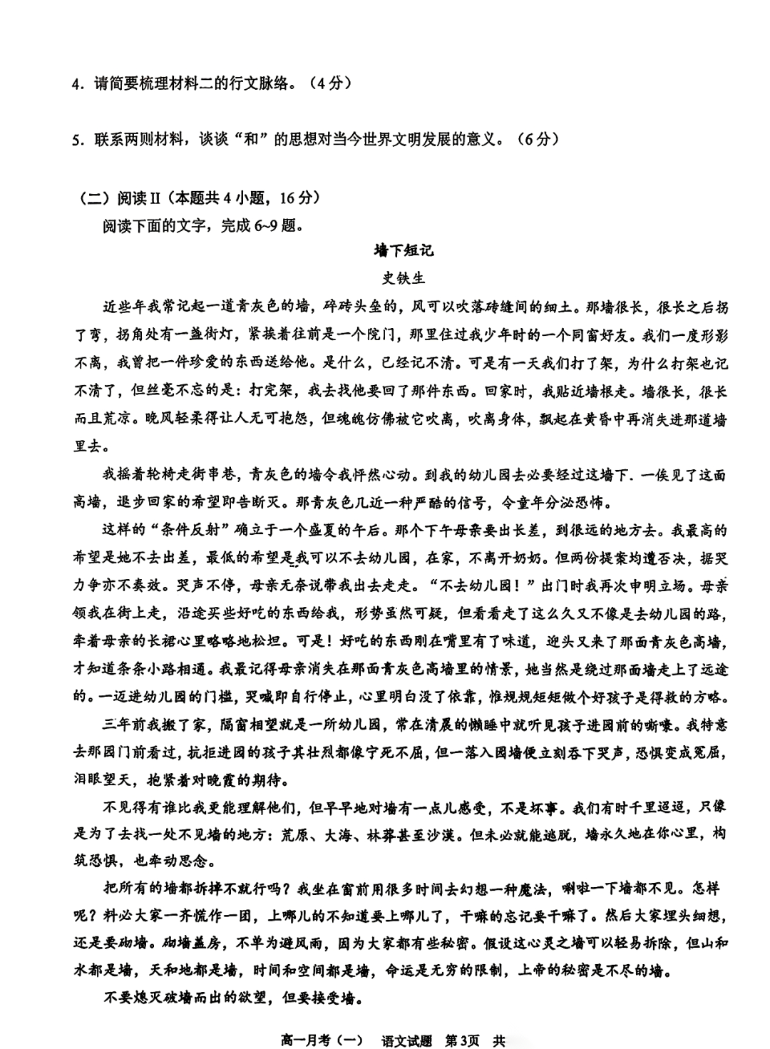 【广西卷】【高一】广西壮族自治区南宁市南宁第三中学2026-2026学年度下学期高一年级月考(一)(3月)(3月底)理科全科试题卷+答案