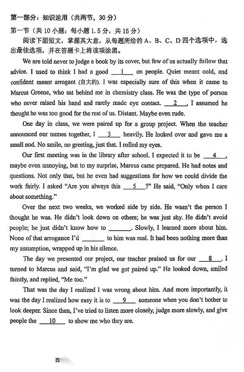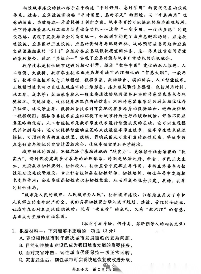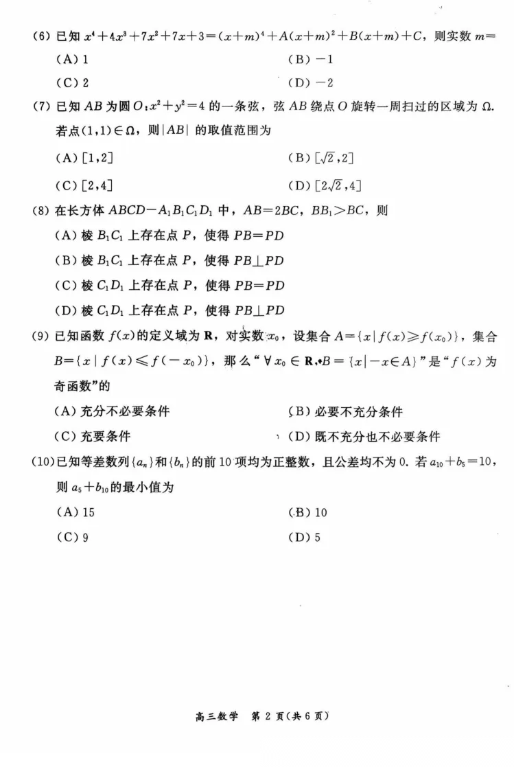 【北京卷】北京市西城区2026年高三年级统一测试试卷(西城高三一模)(4.7-4.10) 全科试题卷(缺地理)+答案