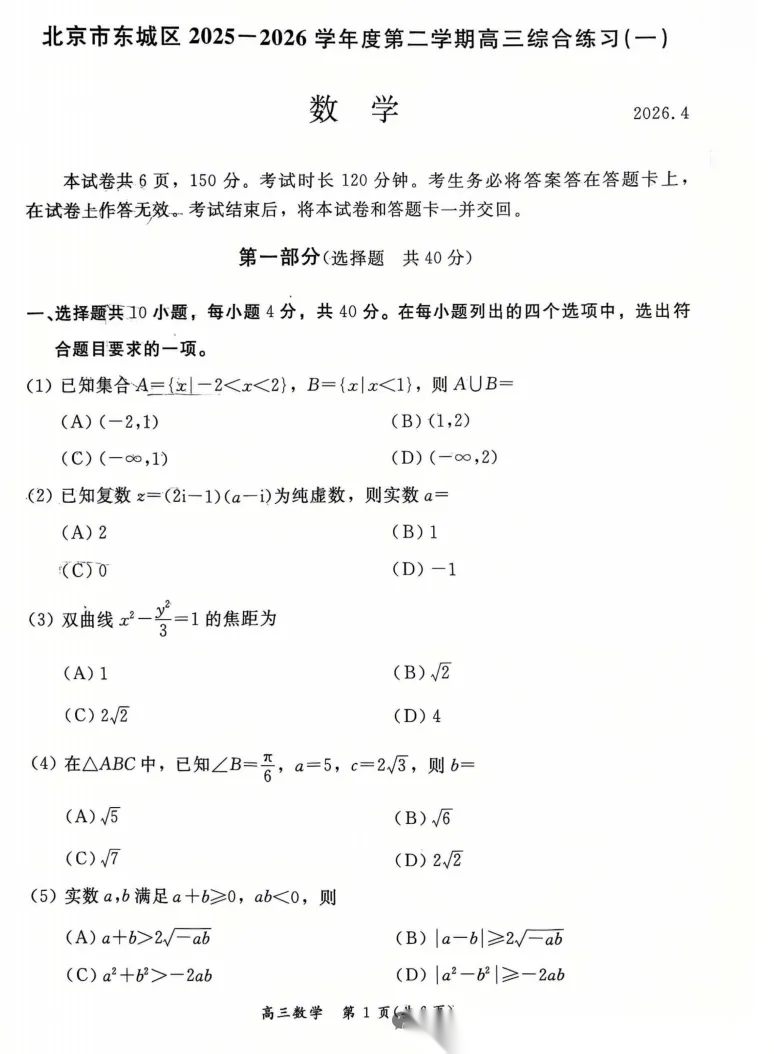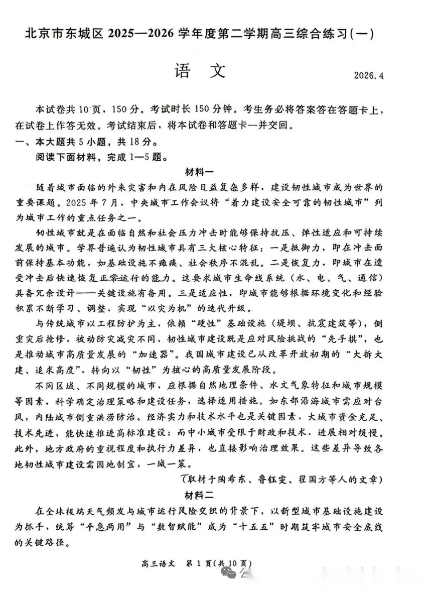 【北京卷】北京市东城区2025-2026学年度第二学期高三年级综合练习(一)(东城高三一模)(4.7-4.10) 全科试题卷(缺地理)+答案 【北京卷】北京市东城区2025-2026学年度第二学期高三年级综合练习(一)(东城高三一模)(4.7-4.10) ...