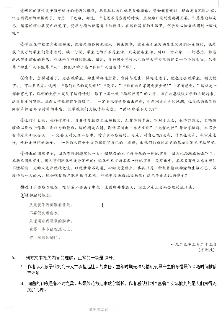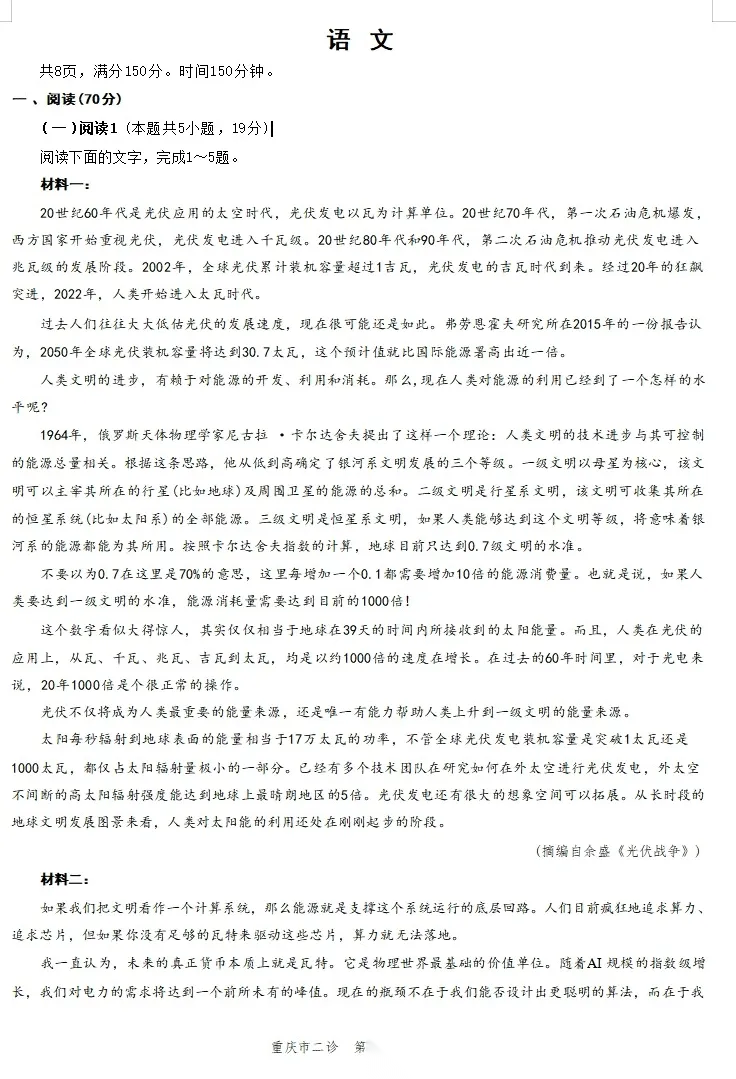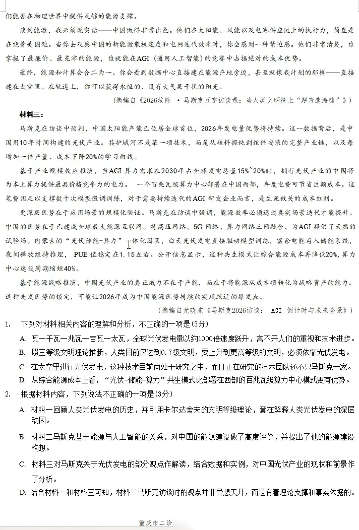 【重庆卷】重庆市2026年普通高等学校招生全国统一考试高三第二次联合诊断考试(康德二诊)(4.9-4.11) 数学物理英语语文历史试题卷+答案