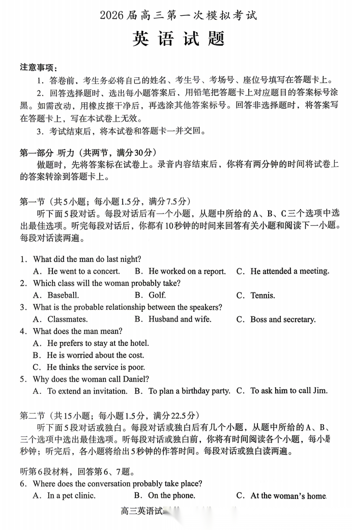 【重庆卷】重庆市2026年普通高等学校招生全国统一考试高三第二次联合诊断考试(康德二诊)(4.9-4.11) 数学物理英语语文历史试题卷+答案 【重庆卷】重庆市2026年普通高等学校招生全国统一考试高三第二次联合诊断考试(康德二诊)(4.9-4.11) 数学...
