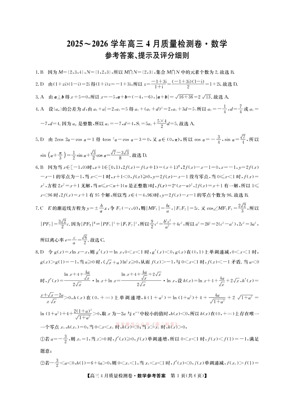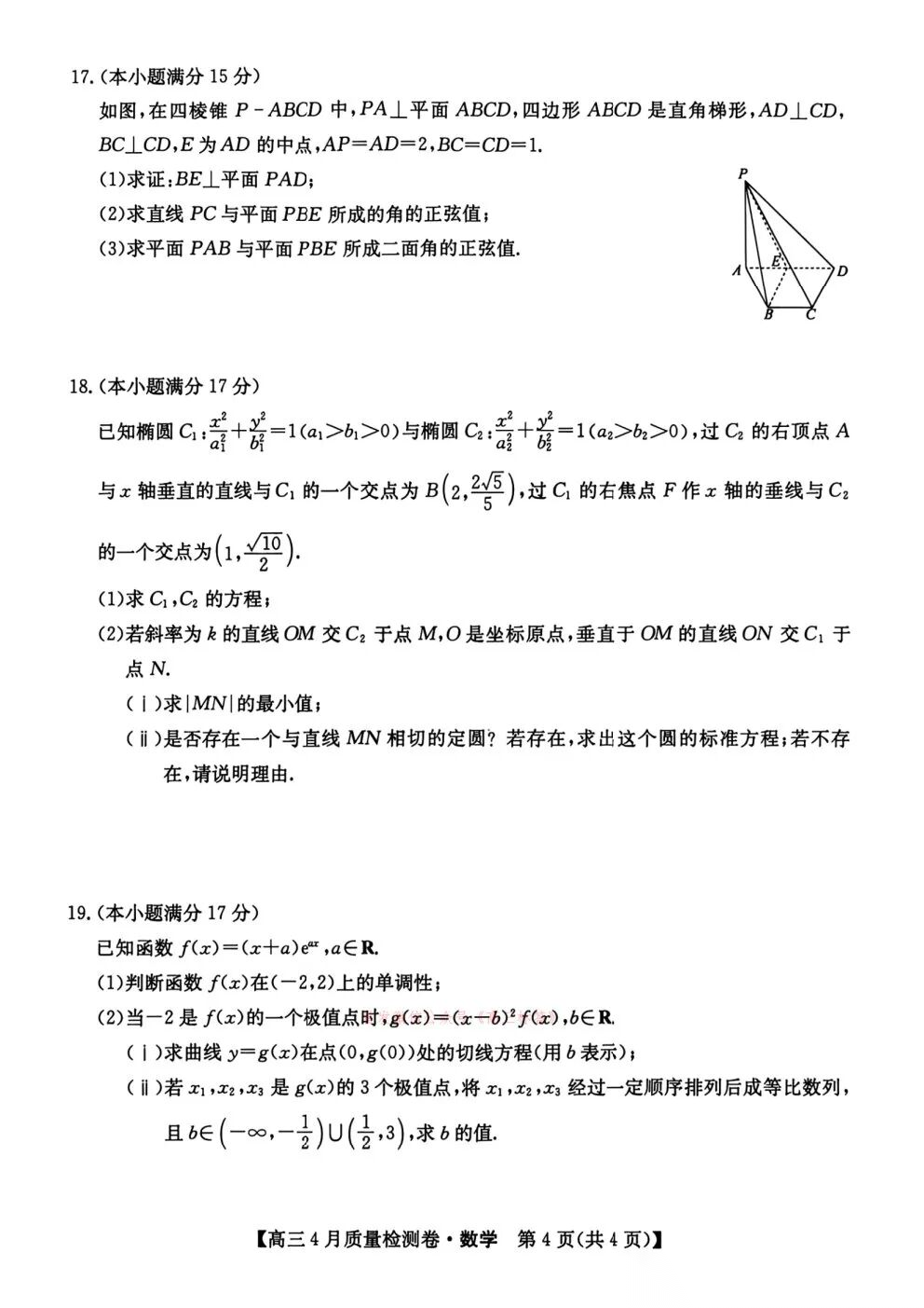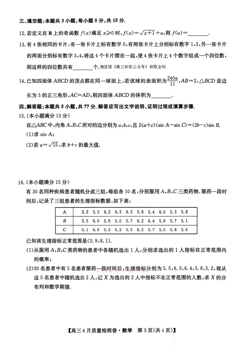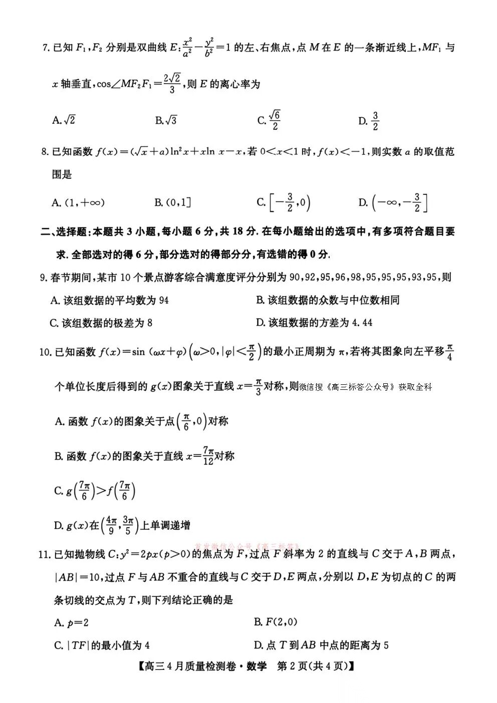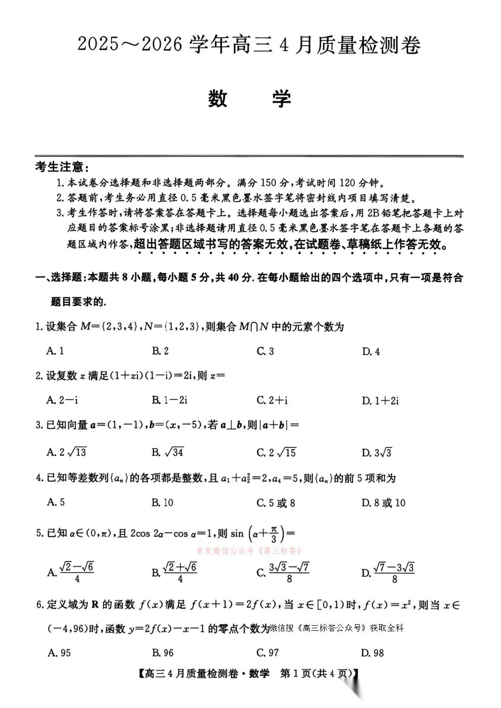 卓越联盟2025-2026学年高三4月质量检测卷全科下载