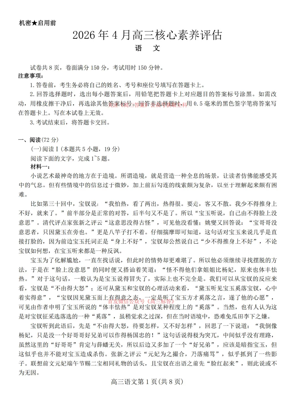 山东名校联盟2026年4月高三核心素养评估全科下载