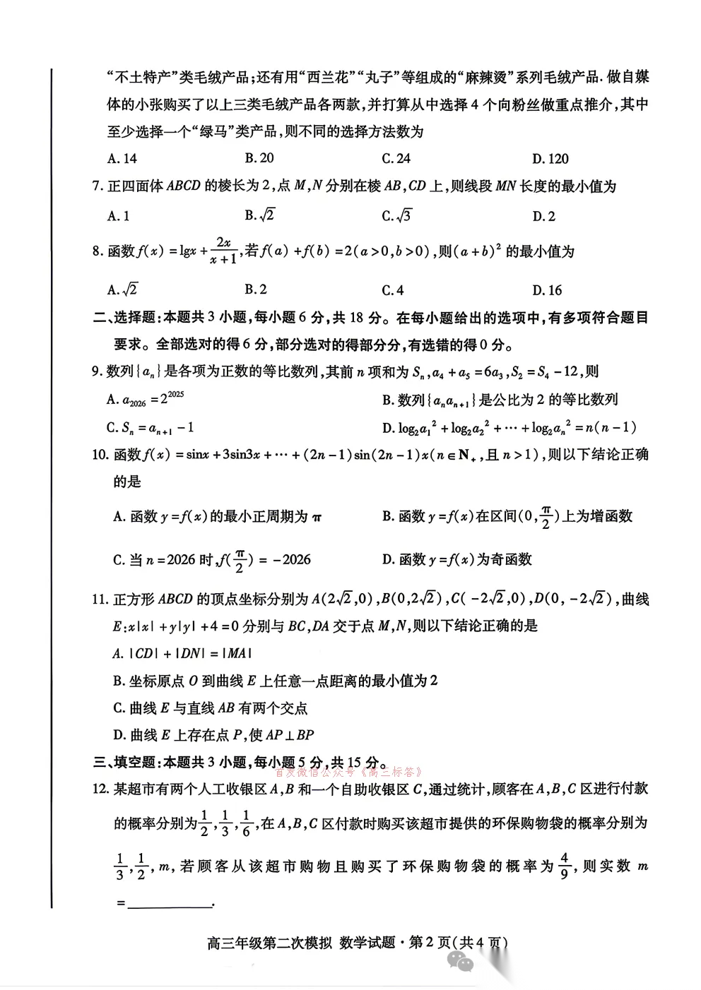【甘肃二模】2026年高三年级第二次模拟考试全科下载