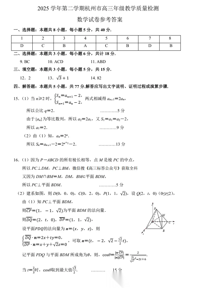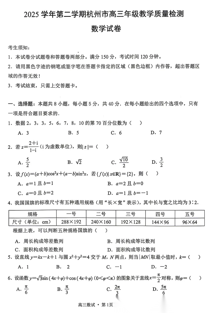 【杭州二模】杭州市高三年级4月教学质量检测全科下载