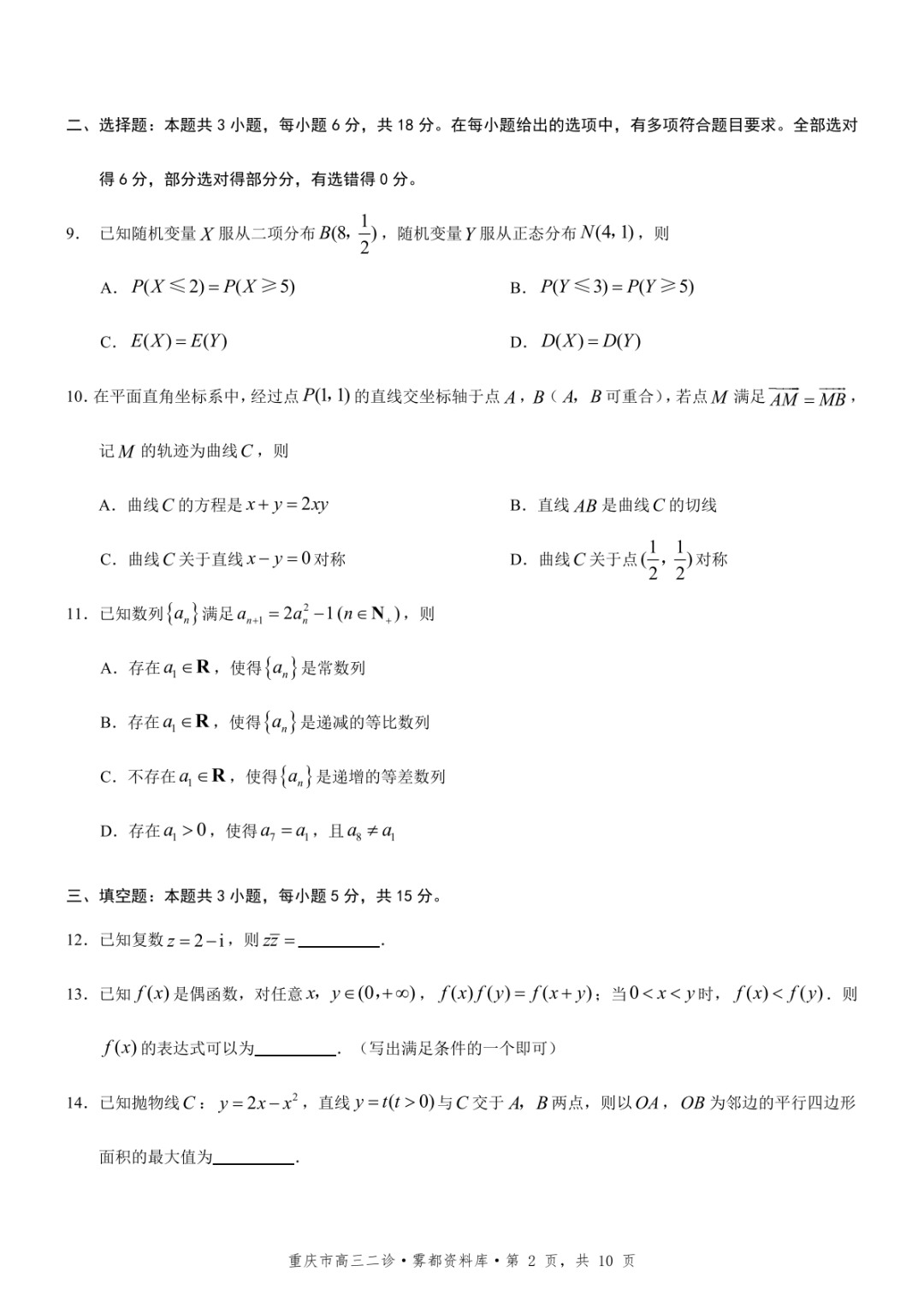 【重庆康德二诊全科】2026届重庆市高三4月第二次诊断性考试
