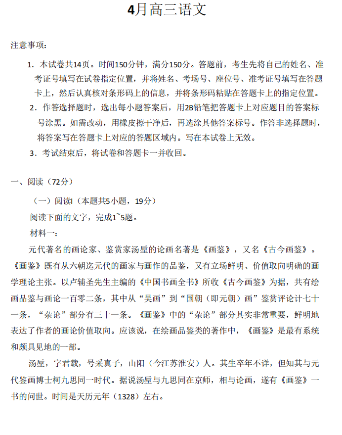 2026年4月江西三新协作体高三阶段训练试题及答案汇总 2026年4月江西三新协作体高三阶段训练试题及答案汇总