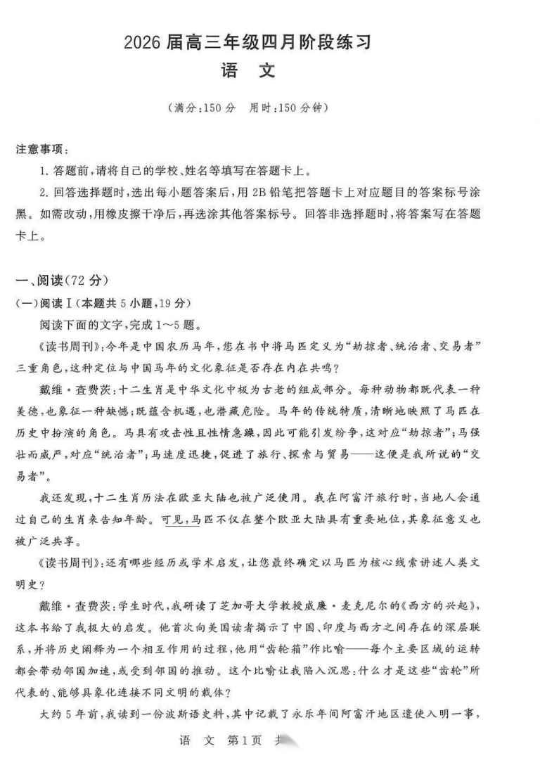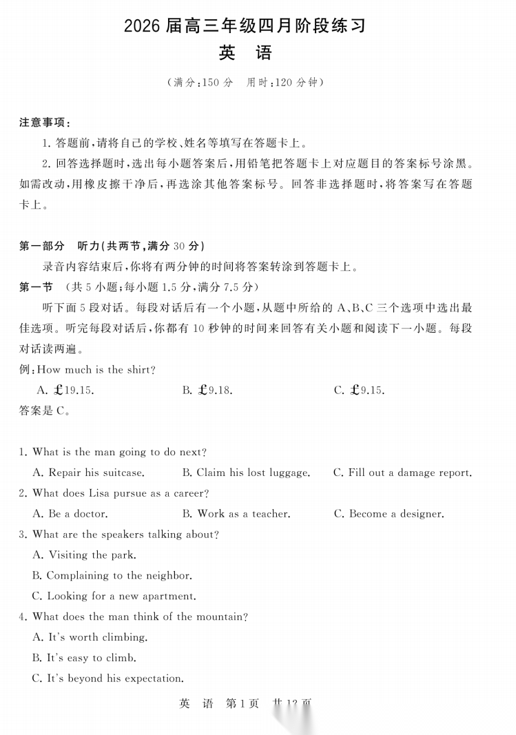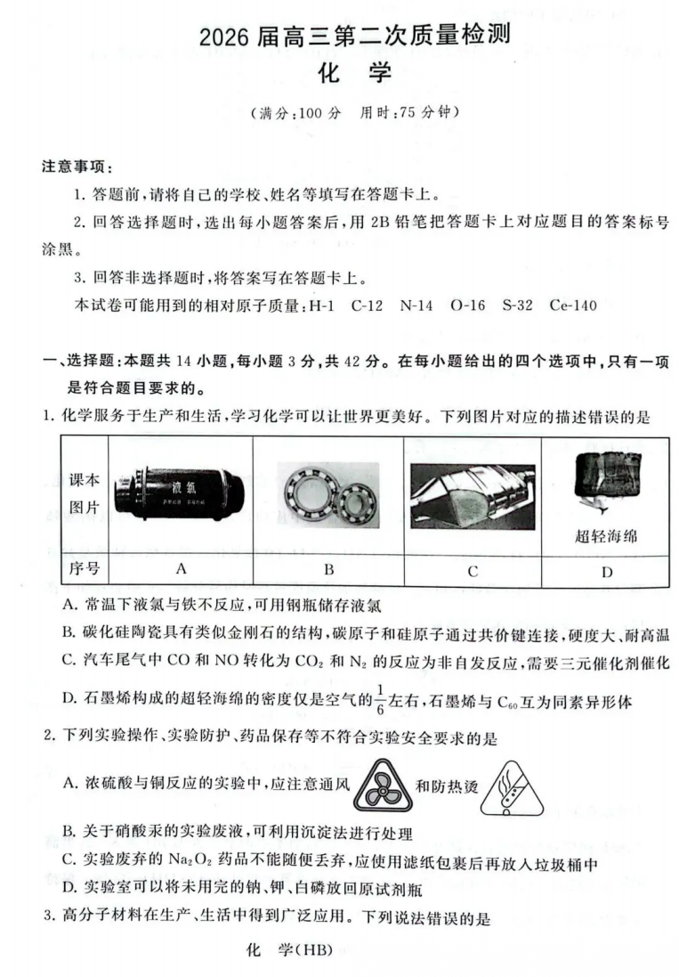 【西北卷】【山西卷】山西省卓越联盟2025-2026学年高三年级4月质量检测卷(26-X-493C)(4.9-4.10) 全科试题卷+答案 【西北卷】【山西卷】山西省卓越联盟2025-2026学年高三年级4月质量检测卷(26-X-493C)(4.9-4.10)...