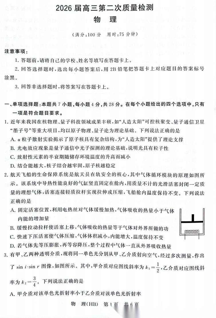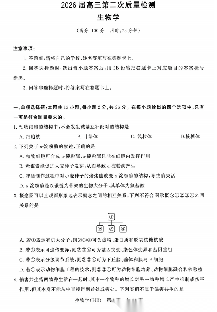 2026年湘豫名校联盟高三4月联考 2026年湘豫名校联盟高三4月联考