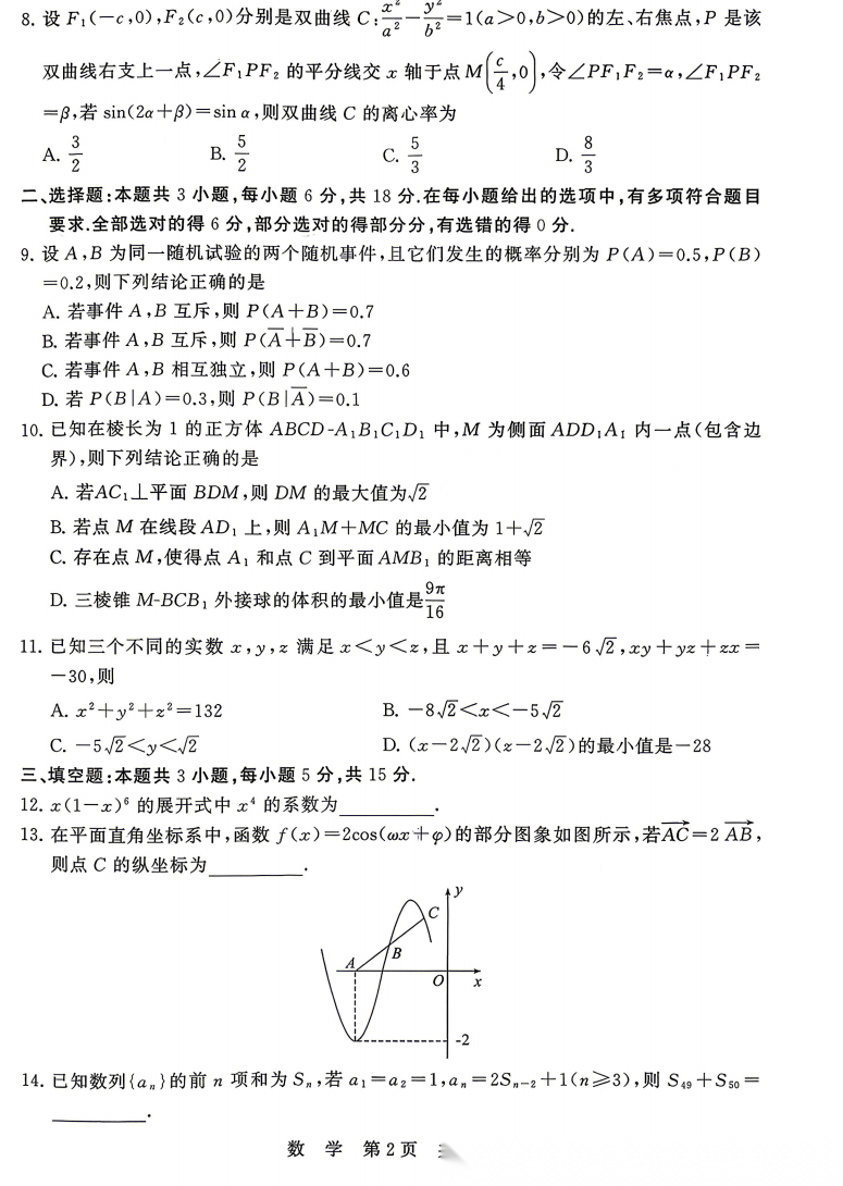 【河北卷】全国八省八校2026届高三年级四月阶段性练习暨第二次质量检测(T8二模)(4.8-4.9) 全科试题卷+答案